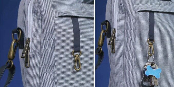 HACKPACKのフロントジッパーには隠しキーチェーンを付けました。