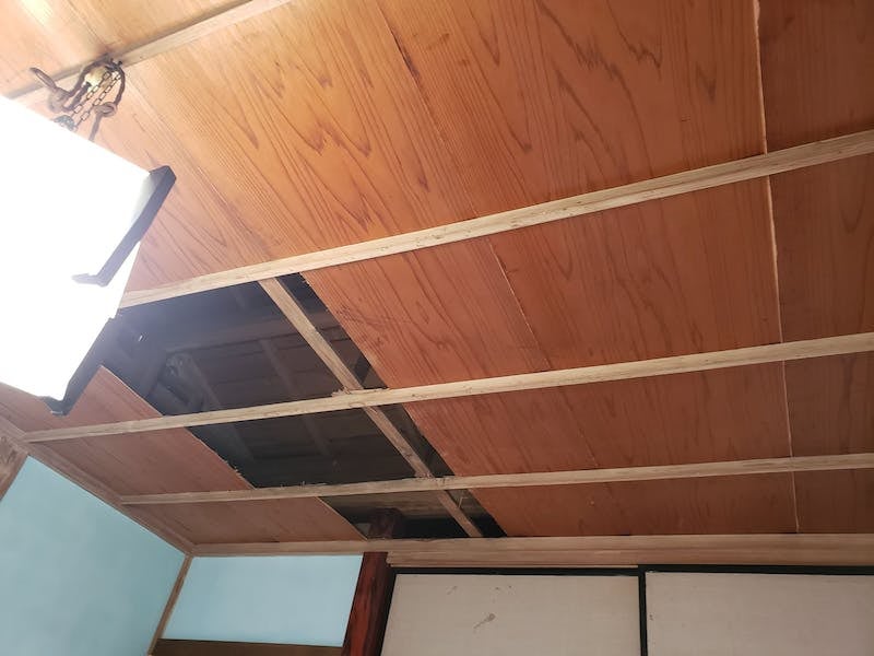 そこへの引っ越しの期限もある為、屋根の補強、カビ除去、天井張り替え、畳交換の処理を行いました