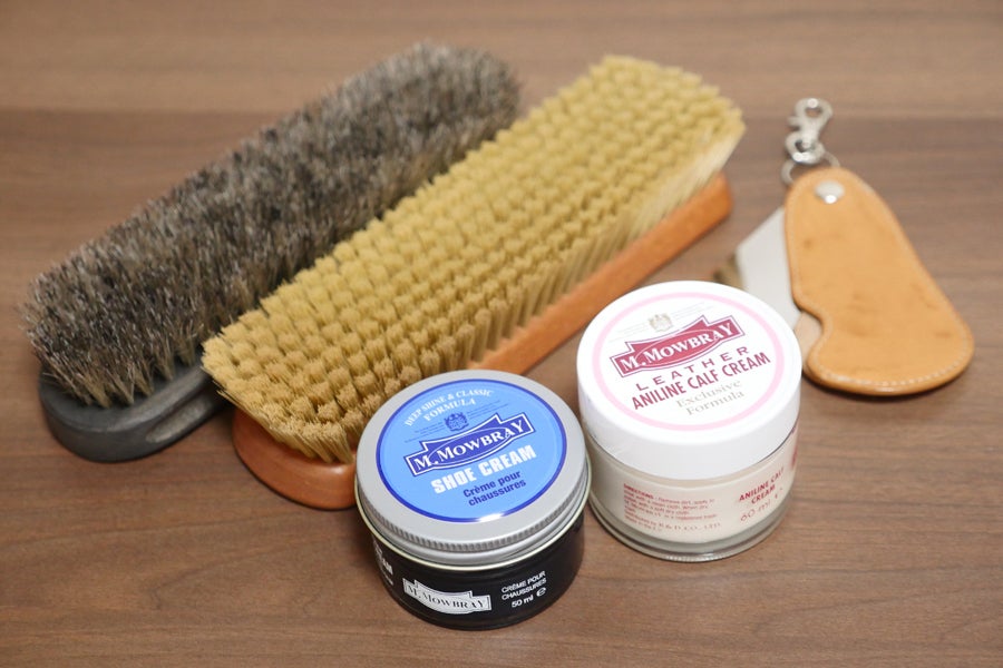 店頭での靴磨き券に加え、初心者の方にも使いやすい、厳選した靴磨きセット!クリームもブラシも初心者の方に使いやすいものをチョイスしました!