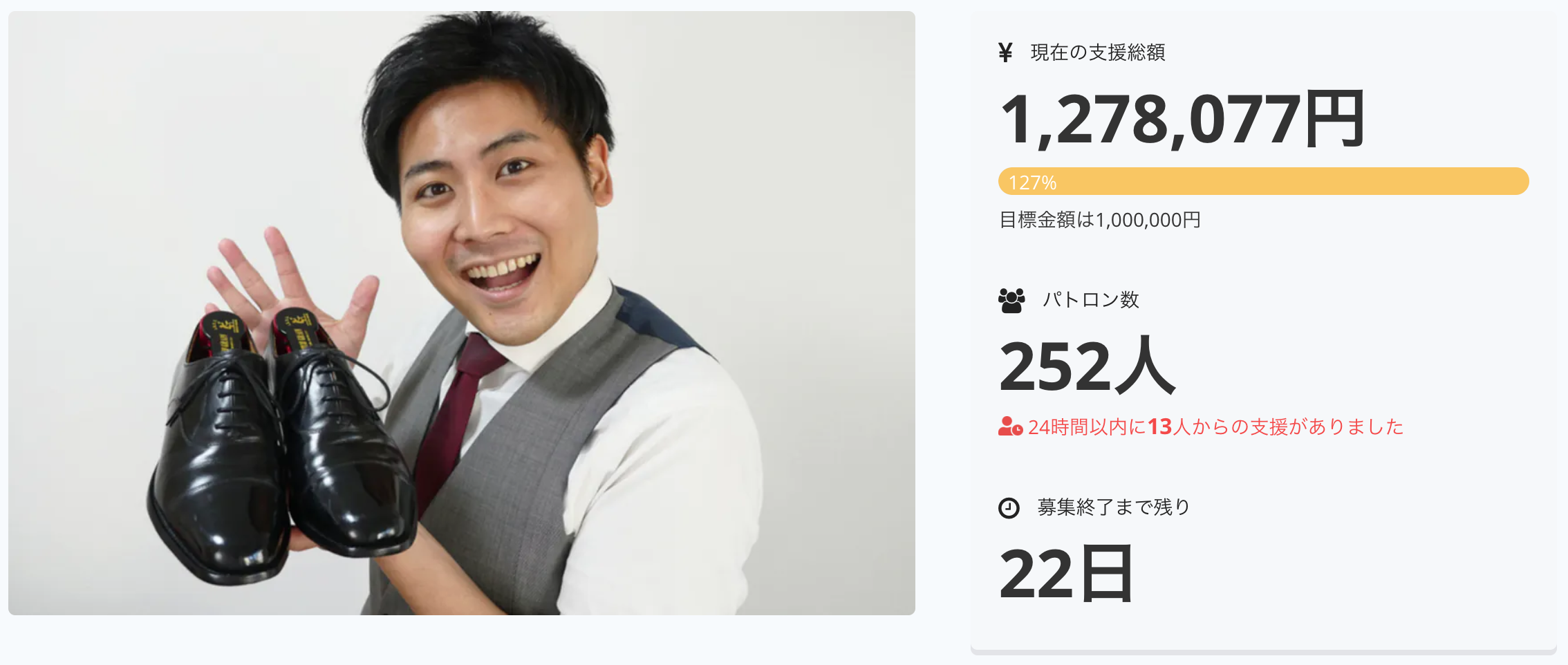 現在22日を残して252人もの方にご支援いただいております!