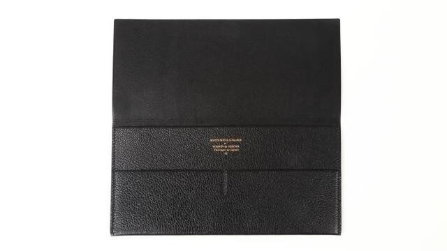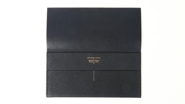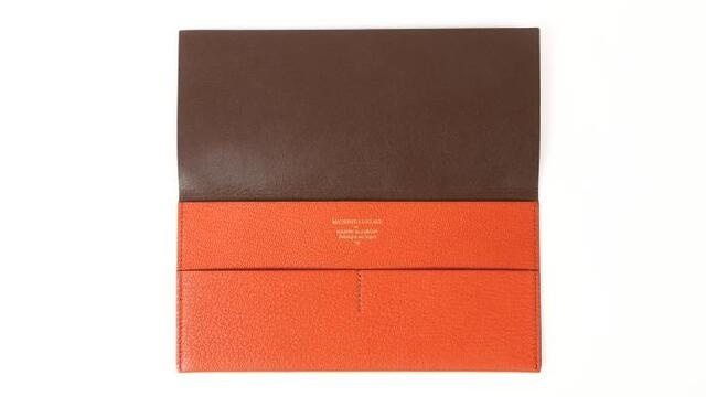 素材は、外装がゴート(山羊革)内装の一部にステア(牛革)を使うことで手にした際の柔らかさとしなやかさを実現しています。