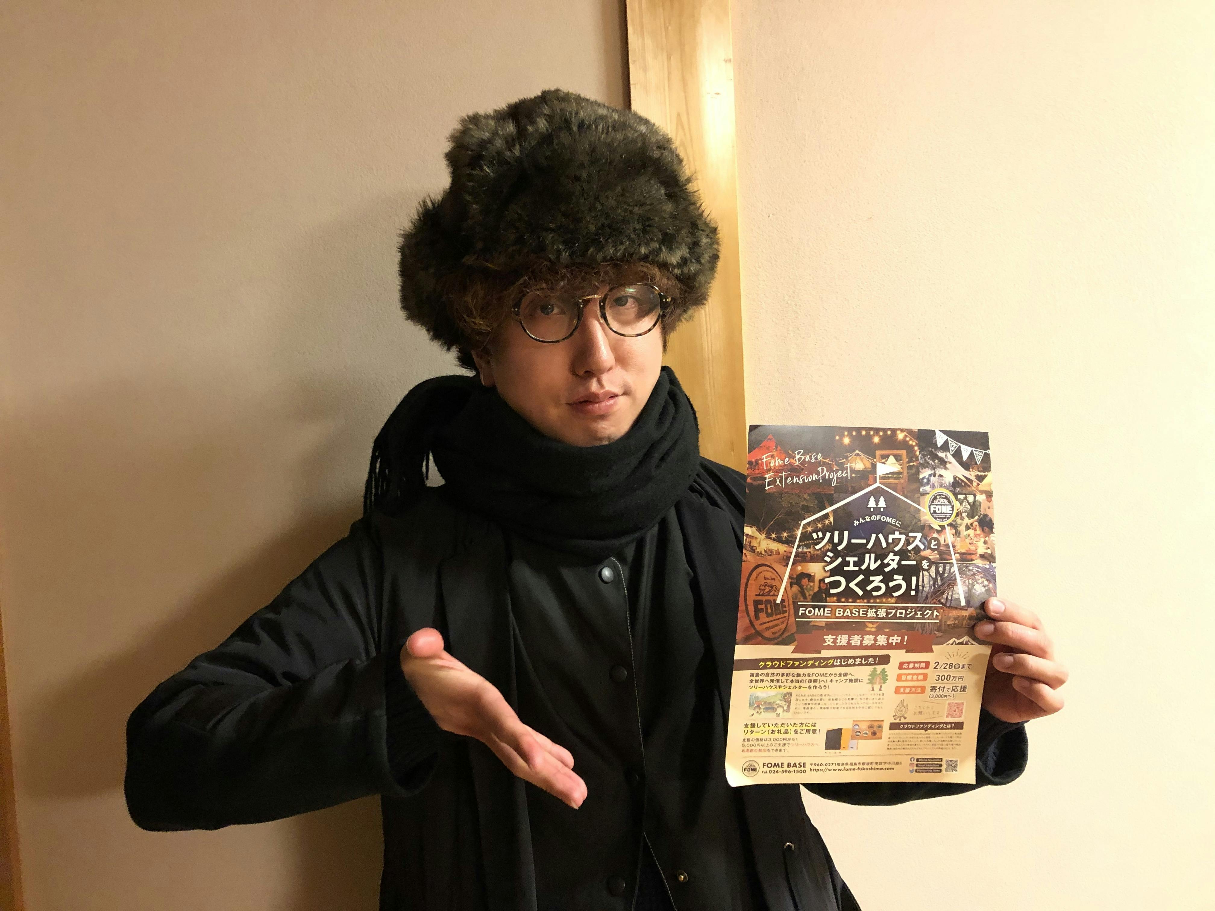 プロジェクトをご覧いただき、ありがとうございます。FOME代表の齊藤と申します。私たちは福島の自然を発信したいという想いから、2014年にキャンプをメインに活動を始めました。福島の自然の素晴らしさを伝え続けようという想いをこめて、2017年4月に釣りや県の特産品を使った様々な体験ができるキャンプ場としてFOME BASEをオープンしました。(来年度法人化予定です。)