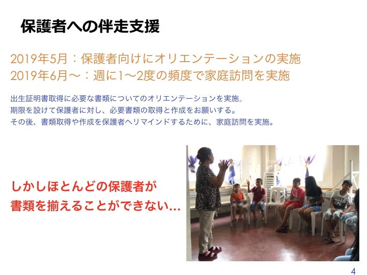 1つ1つの家庭に丁寧に伴走支援をする必要がある出生証明書取得の支援は、労力も時間も非常にかかります。しかし子どもの基本的な権利である「出生証明書」を届けるため、また保護者の方たちをエンパワメントするためにこの活動は継続的に実施をしていきます。
