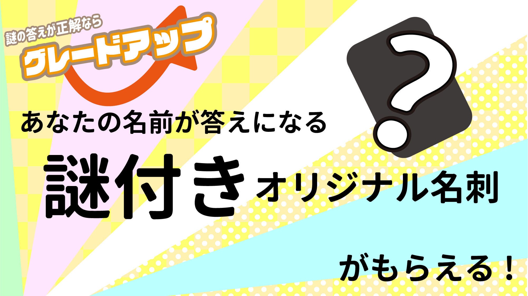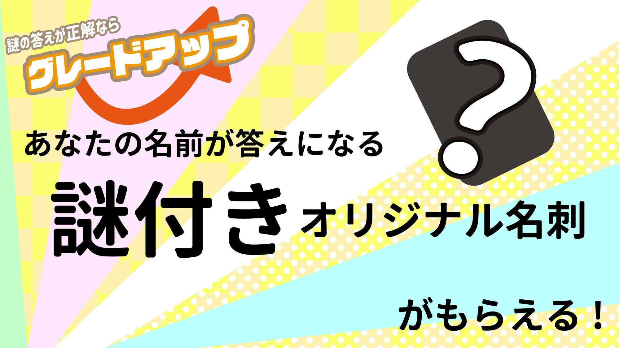 謎に正解すると、あなたのご希望の名前やニックネーム、好きな言葉が解答になるオリジナルの名刺を制作いたします!(このリターンは通常特典として謎無し名刺、謎正解者は謎付きオリジナル名刺のどちらかが手に入ります。)