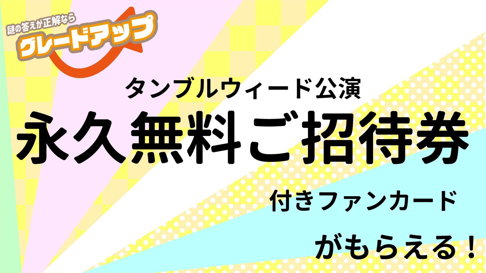 ※チケットはご自身でご購入頂き、公演会場にて「タンブルウィード公演永久無料ご招待券付ファンカード」と本名が記載された身分証をご提示頂くことで、チケット代金がキャッシュバックされます。販売手数料はご負担下さい。