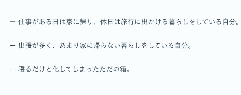 どれだけ家に帰らなくても、毎月同じ家賃を支払うのは、勿体無いと思いませんか?