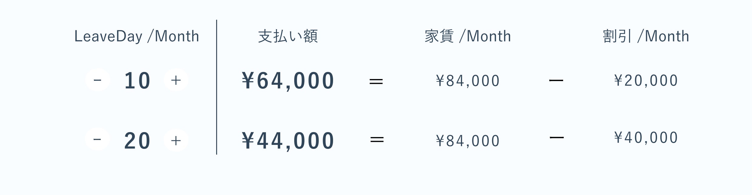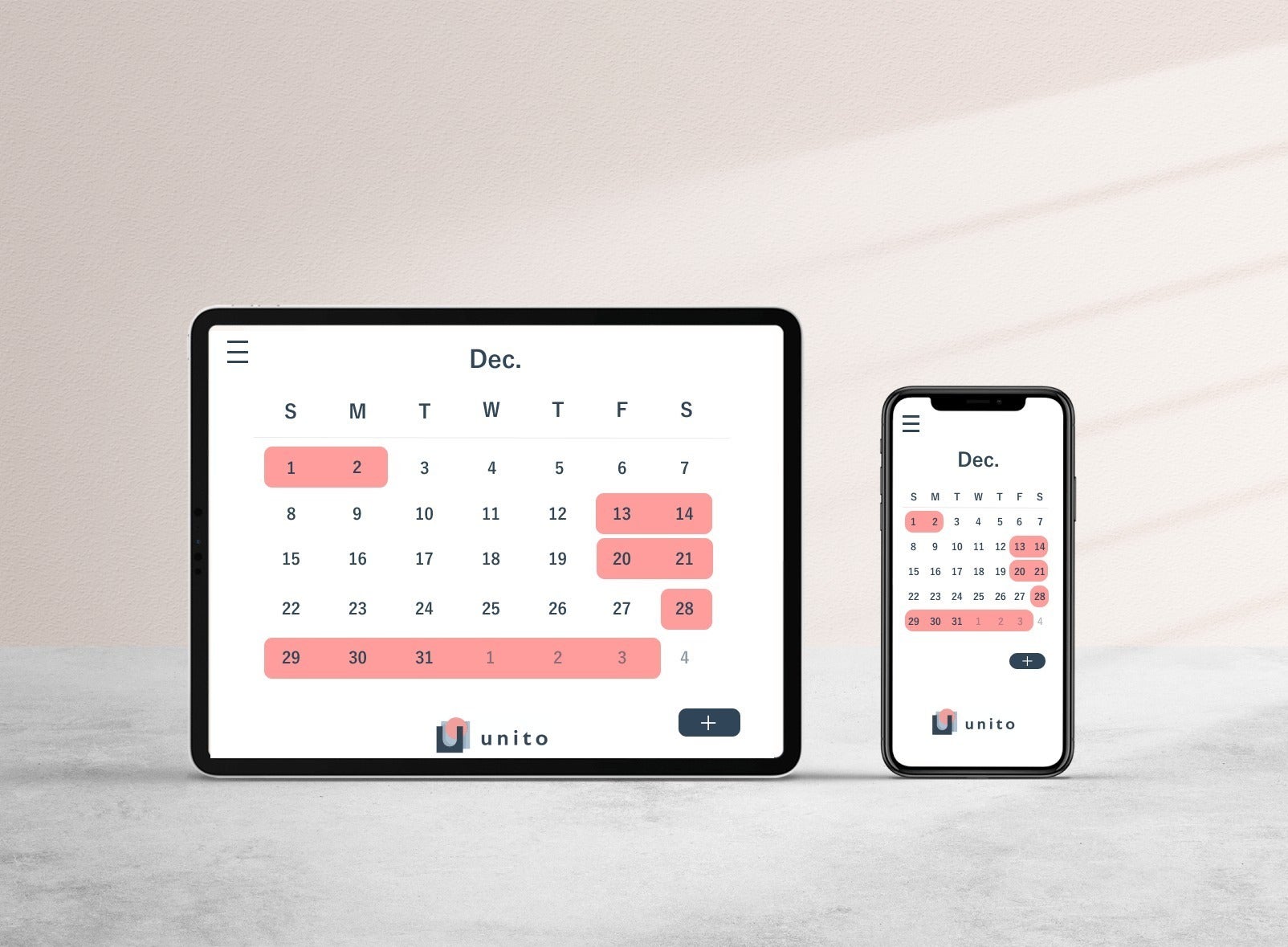 「連休で帰省している日」「休日で旅行に出かけている日」などを、unitoのアプリケーションから、ワンタップで指定することで、指定した日の外泊分が翌月の家賃から差し引かれます。