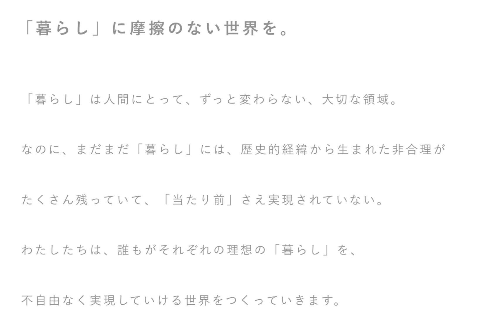 “ 誰もが自分にあった理想の 「暮らし」 を不自由なく実現できる世界をつくる “