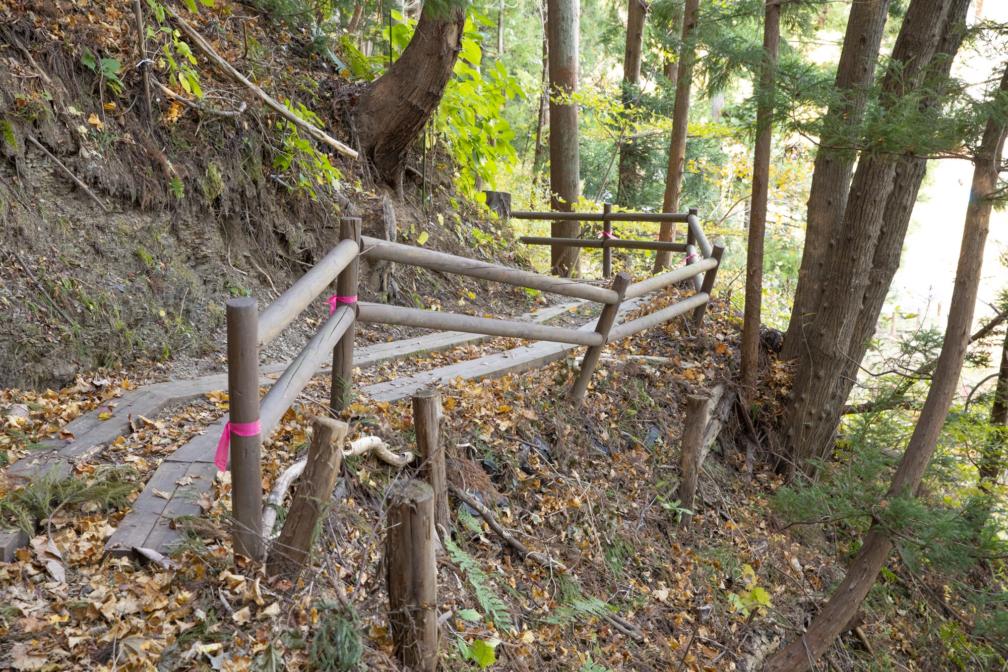昨年10月13日に東日本を襲った台風19号で、釜石は想定外の暴風雨により多大な被害が発生しました。 宝来館の裏山の避難道も、沢が崩れた影響で車椅子の車輪が通るために引いた板の両脇や間の土が流されてなくなってしまったり、手すりが倒れるなどの被害だ出たため、立ち入り禁止にせざる得なくなりました。