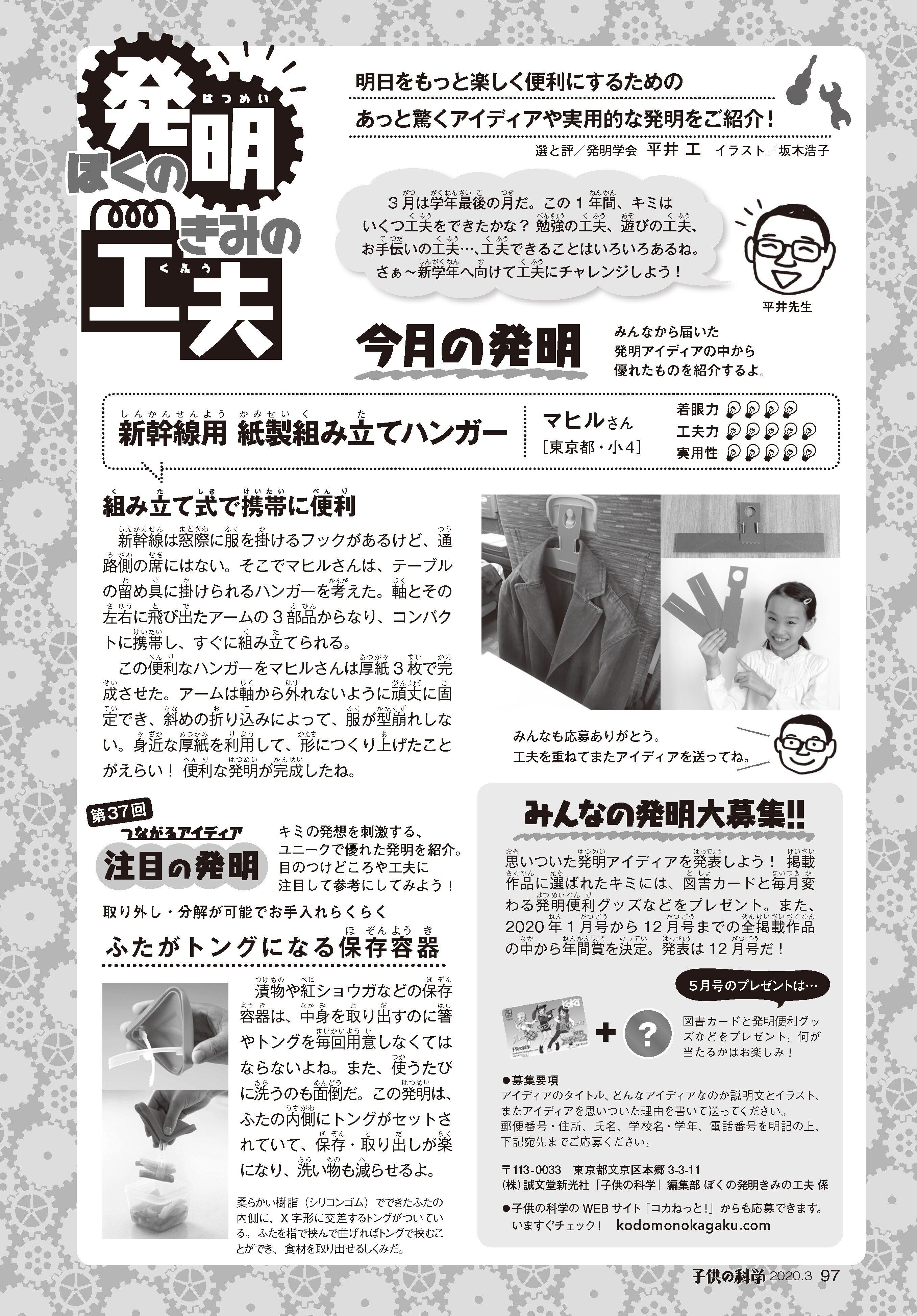 本日、発行された「子供の科学」(3月号)で、マヒルと「マヒルハンガー」が紹介されました!