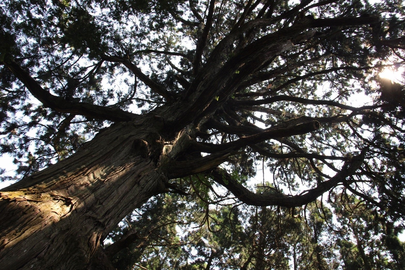 上ノ坊から望む広田湾。ワカメや牡蠣の産地として全国に出荷されています。 その中の小友町にある17世帯の小さな集落、上ノ坊。まっすぐ「常膳寺」に続く参道の坂道を上がっていくと、樹齢1000年以上と言われる姥杉が迎えてくれます。