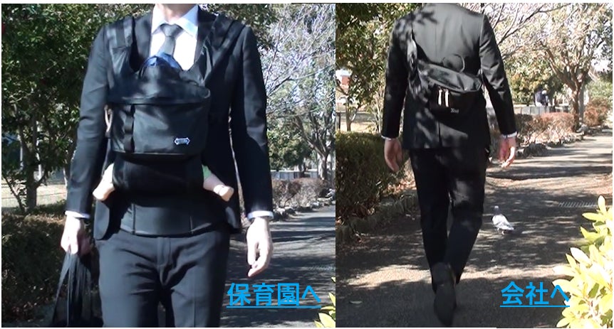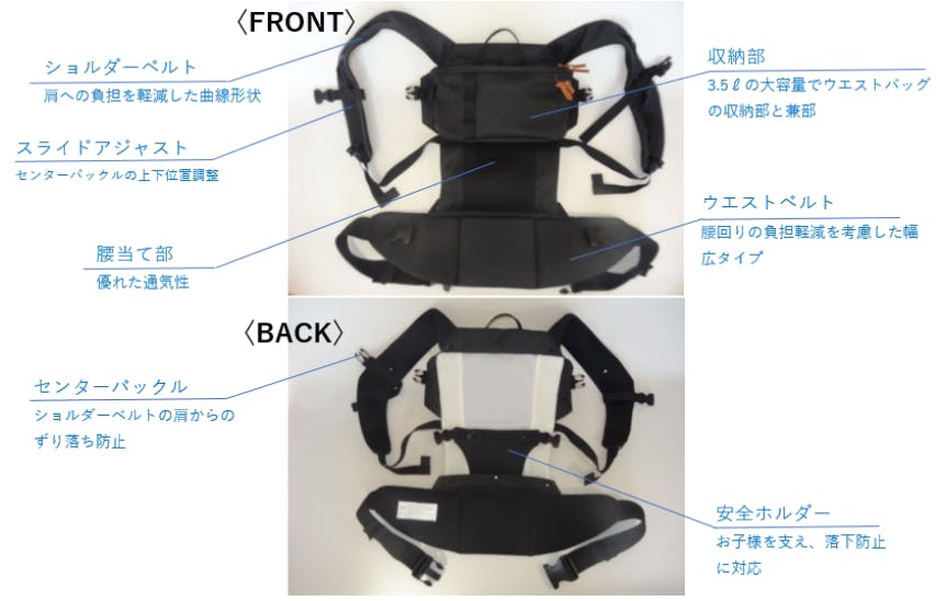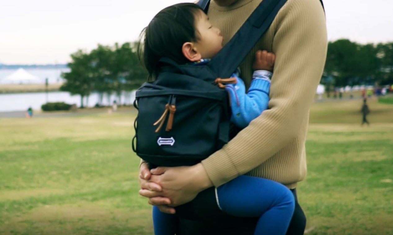 抱っこ紐をバッグに変身させることで荷物にならず、子供が成長してもバッグとして長く使用でき経済的であることを実現しました。