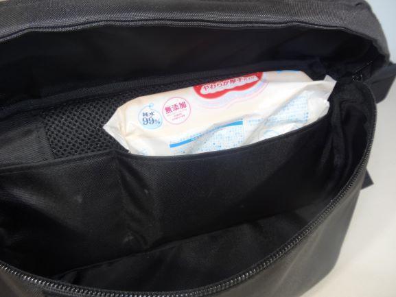 即座に取り出したいウェットティッシュなどを収納できる内ポケット(大)