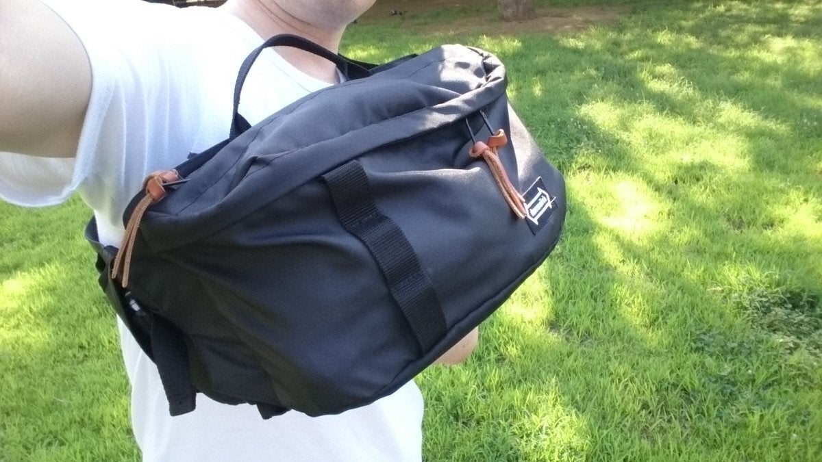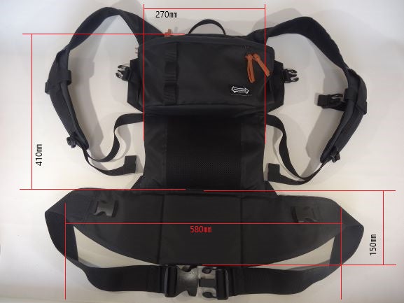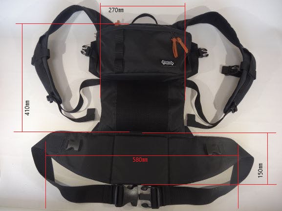 仕組み(肩紐をバッグ背面と腰ベルトに挟み込むことでバッグに変身)