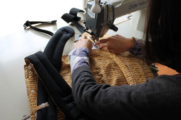 群馬県桐生市の抱っこ紐メーカー㈱Huggyhuggy様にて丁寧に心を込めて製造しております。