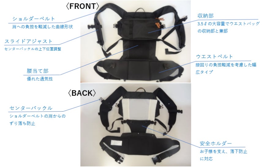 抱っこモード 本格的な抱っこ紐を実現(腰と両肩でサポートし、安全性も抜群)