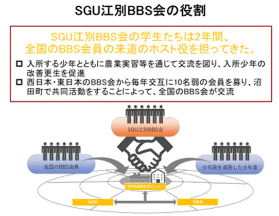 ②西日本・東日本のBBS会から毎年交互に会員を募り、沼田町で共同活動をすることで全国のBBS会が交流する