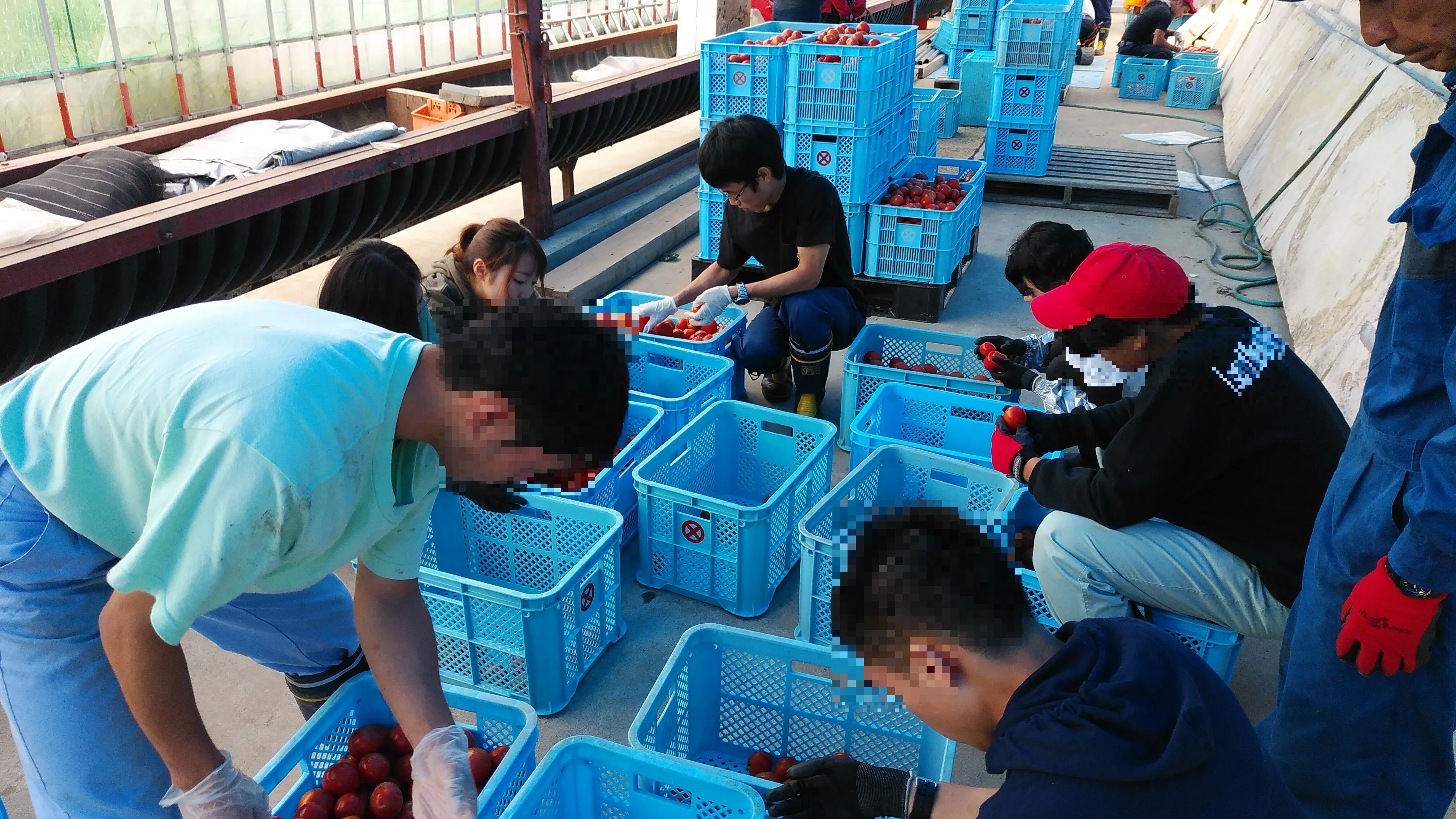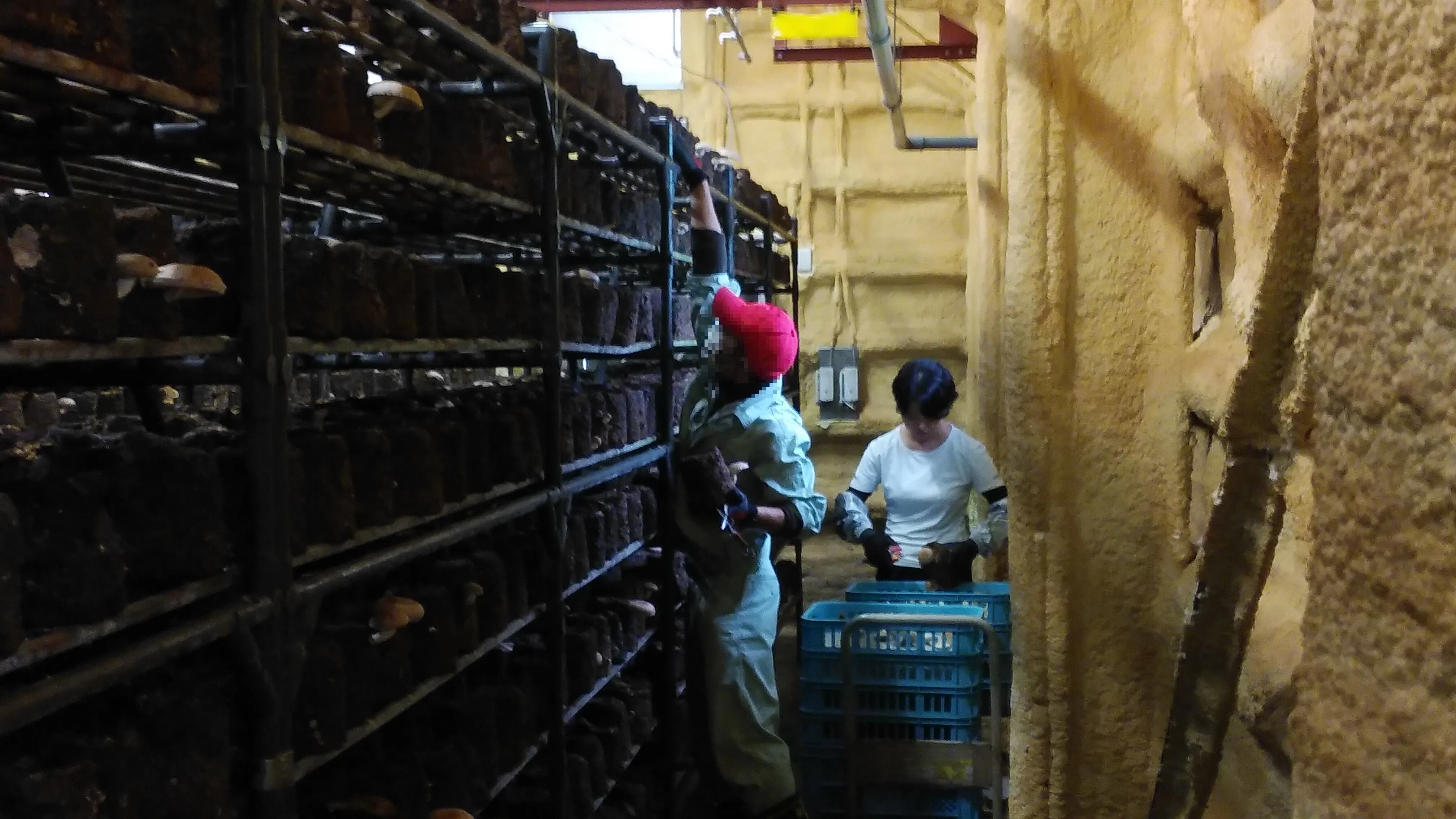 入所する少年たちとグループになって、普段、農業実習をしている少年たちに教えてもらいながら施設で育てているトマトやカボチャの収穫をしたり、しいたけハウスでの作業を手伝ったりしました。