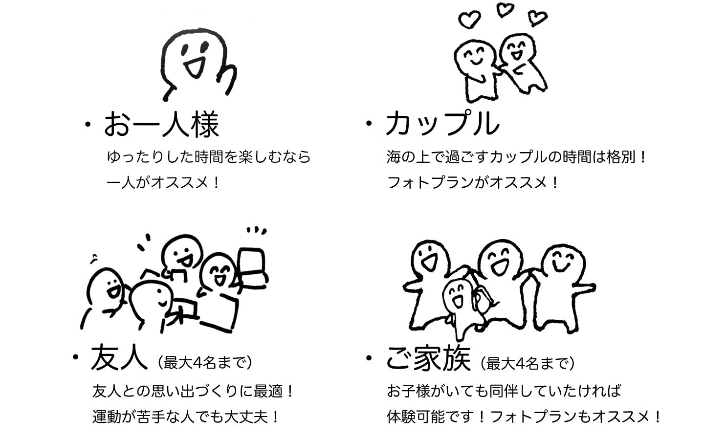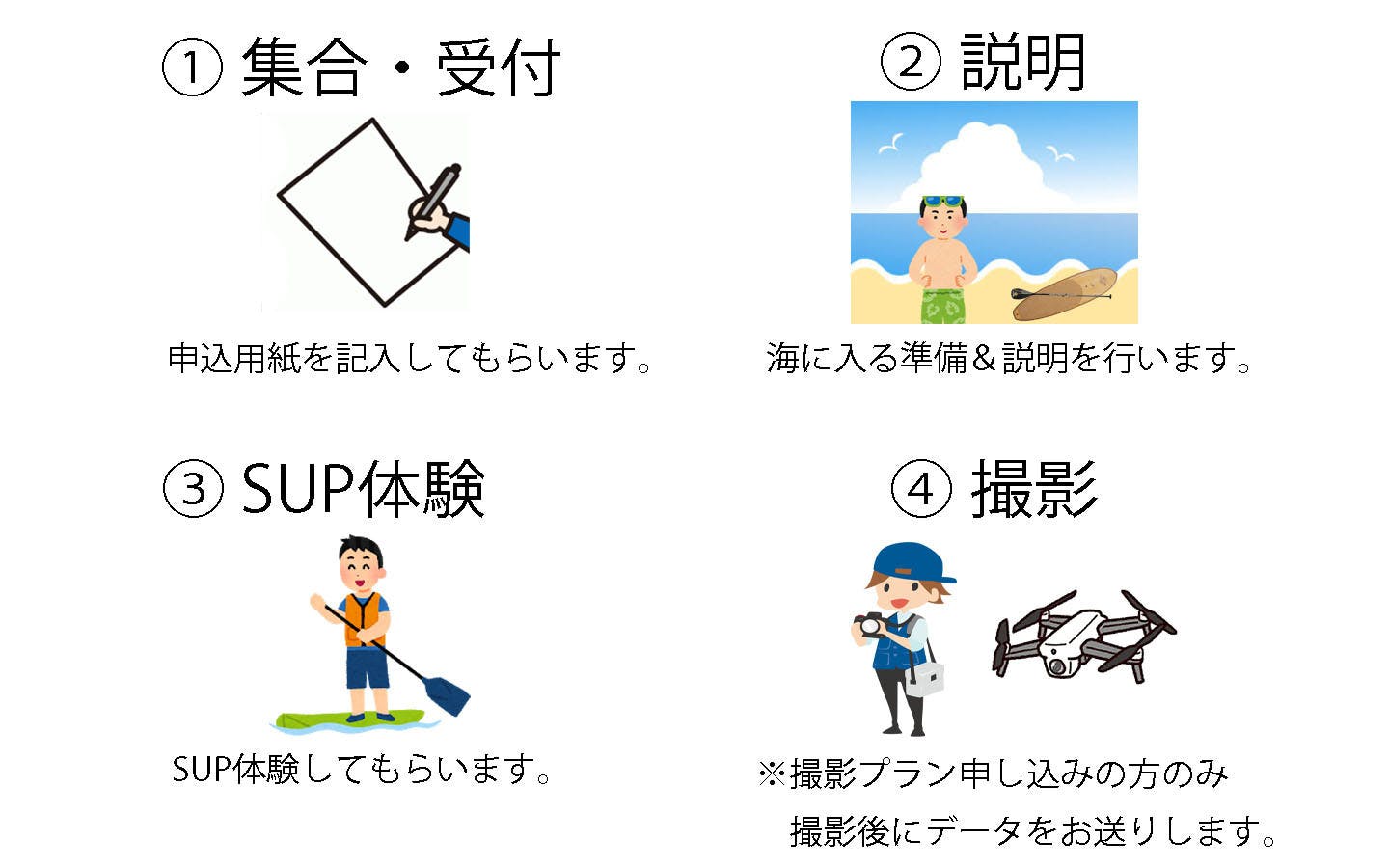 ・SUP体験がメインとなりますが、グレードごとにオプションをつけております。