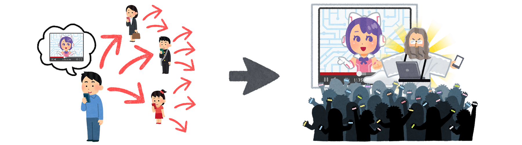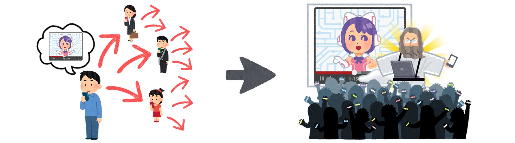 これまで私自身、Vtuberのファンとして、「Vtuberという文化に疎い」友人に、引くほど推しを布教し、時には一緒にイベントにも来てもらいました。するとどうでしょう、気が付けばそんな友人たちが私の布教した推しの動画を見てくれたり、更には私も知らなかった新たなVtuberを推し、布教してきたのです。