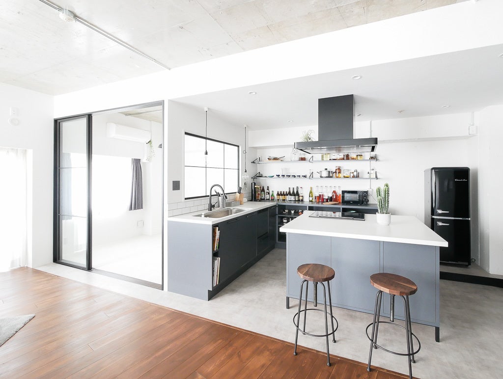 オリジナルキッチン / 8人掛けダイニングテーブル / ダイニングチェア 10脚 / 作業台 / 1人掛けソファ / 3人掛けソファ / カウンターチェア 2脚