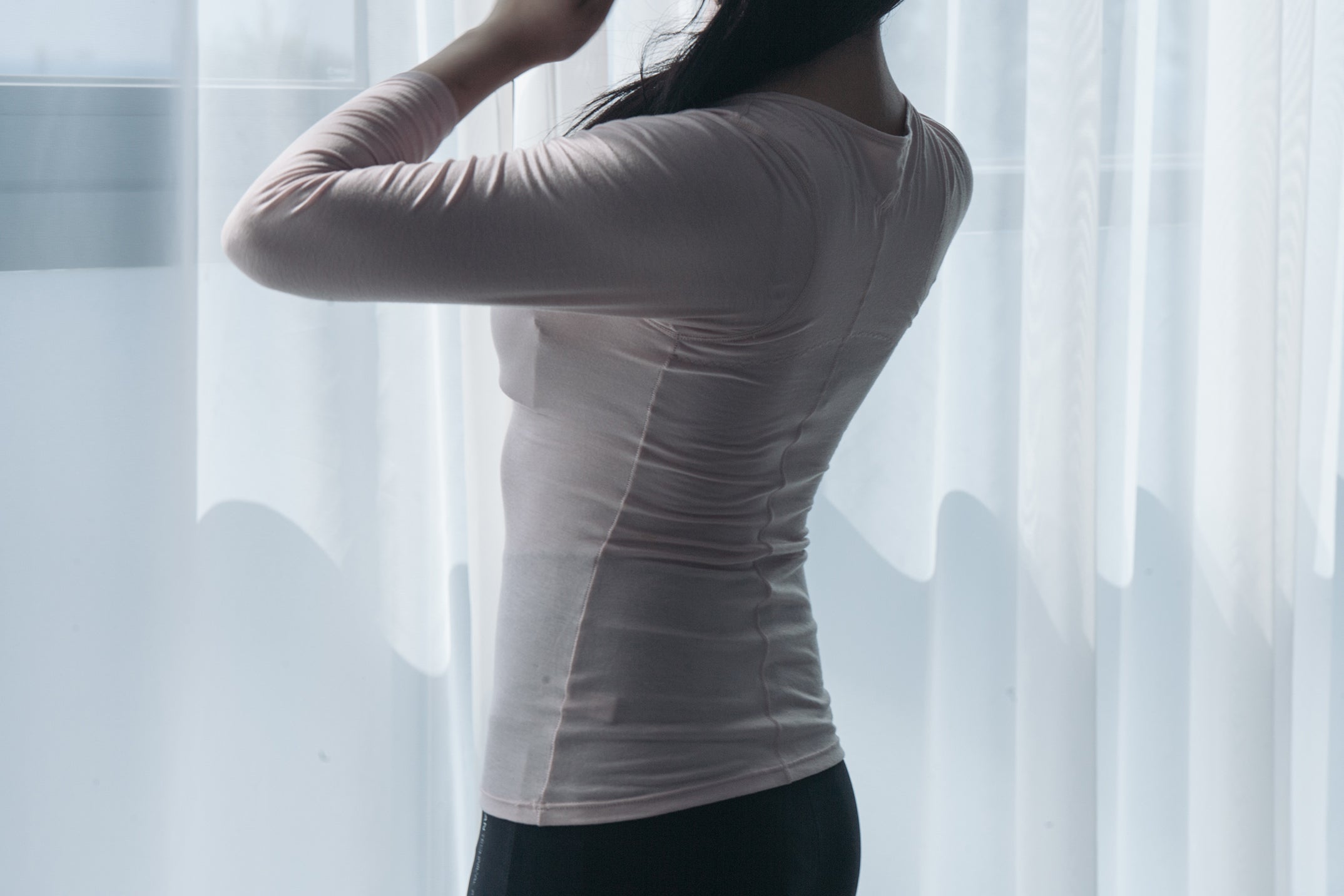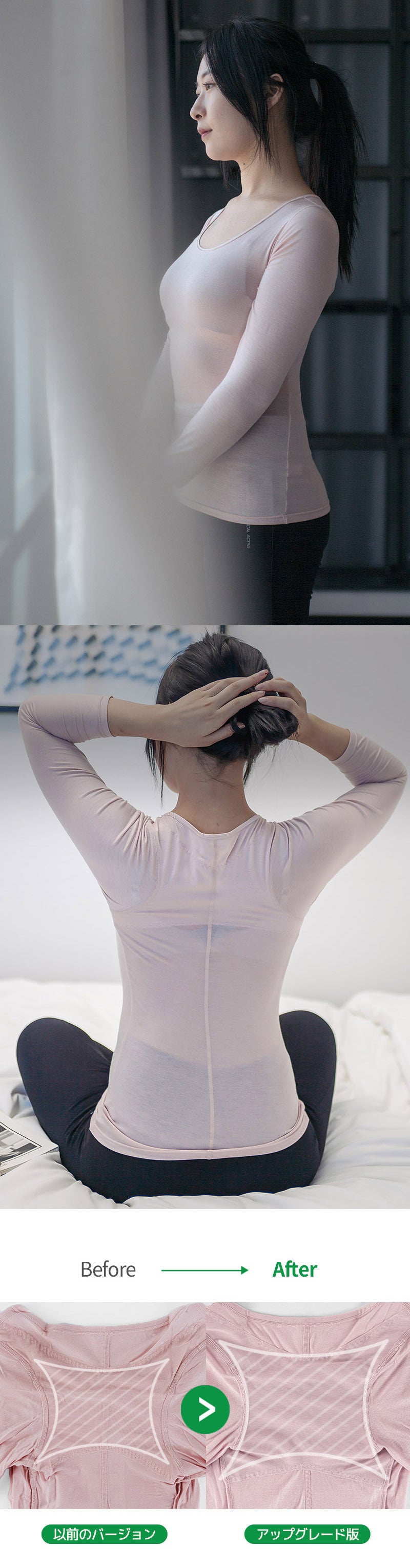 一般的なインナーとは違って肩甲骨の幅が狭く作られております。