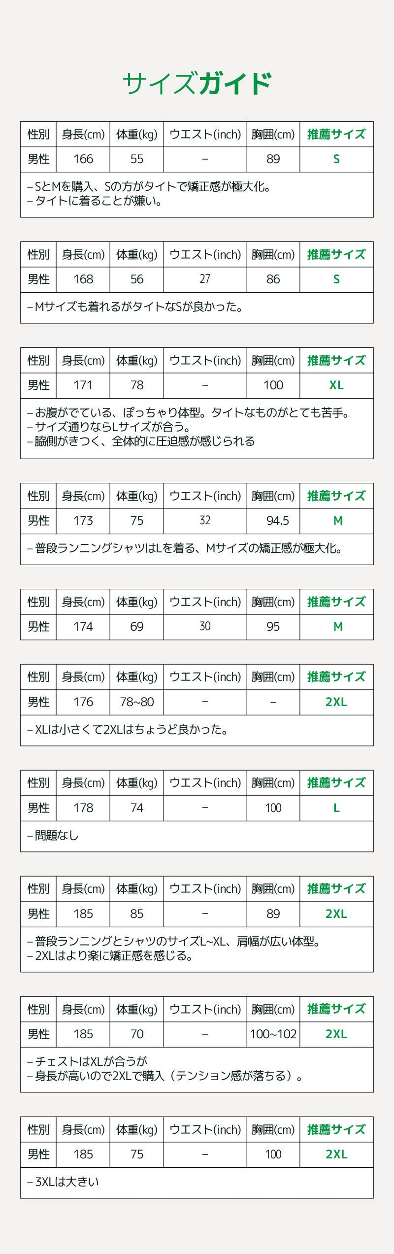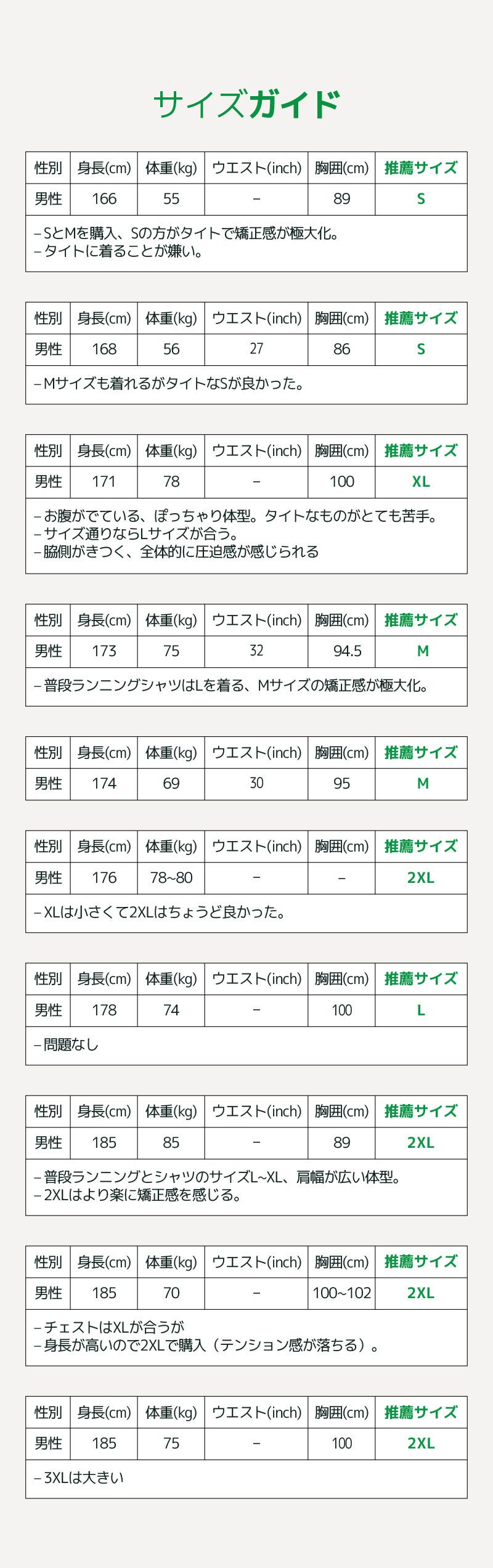 男性の場合、通常、もしくは細めの体格の場合、上記内容と同じですが、腕が太かったり、筋肉が多い方は「ぴったりしたサイズ」をお勧めします。