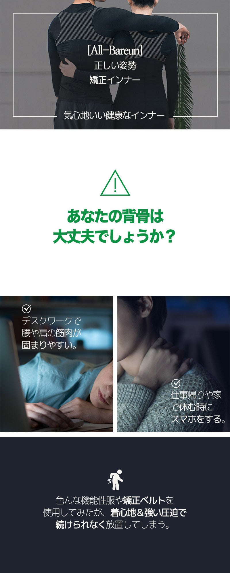 既存の矯正製品は機能性だけにフォーカスが当てられている物が多いですが、[All-Bareun]は日常生活を正しい姿勢で送れるよう、フォーカスを当てました。
