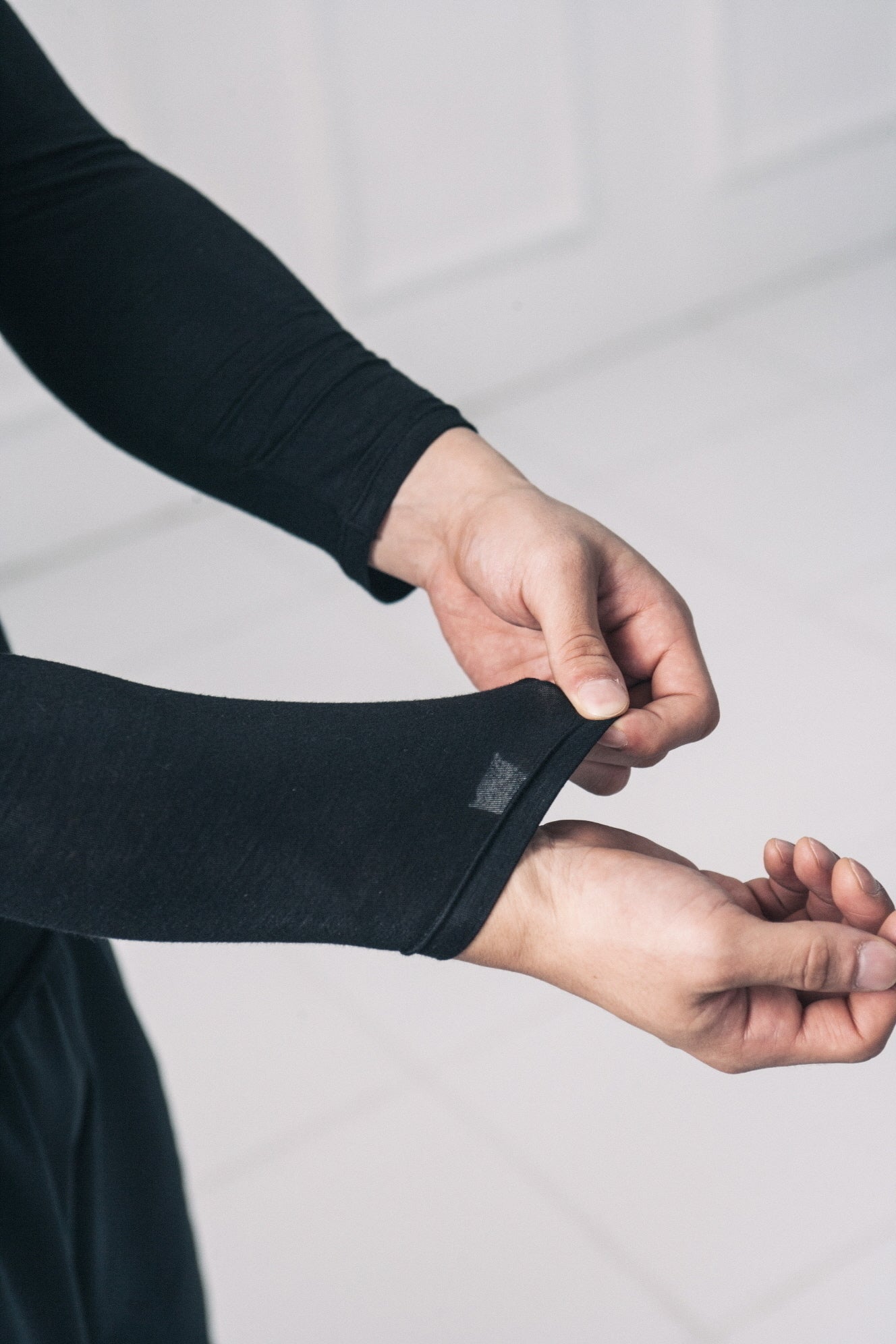 袖口にテンションをつけて、日常生活の動きに支障がないようにしました。