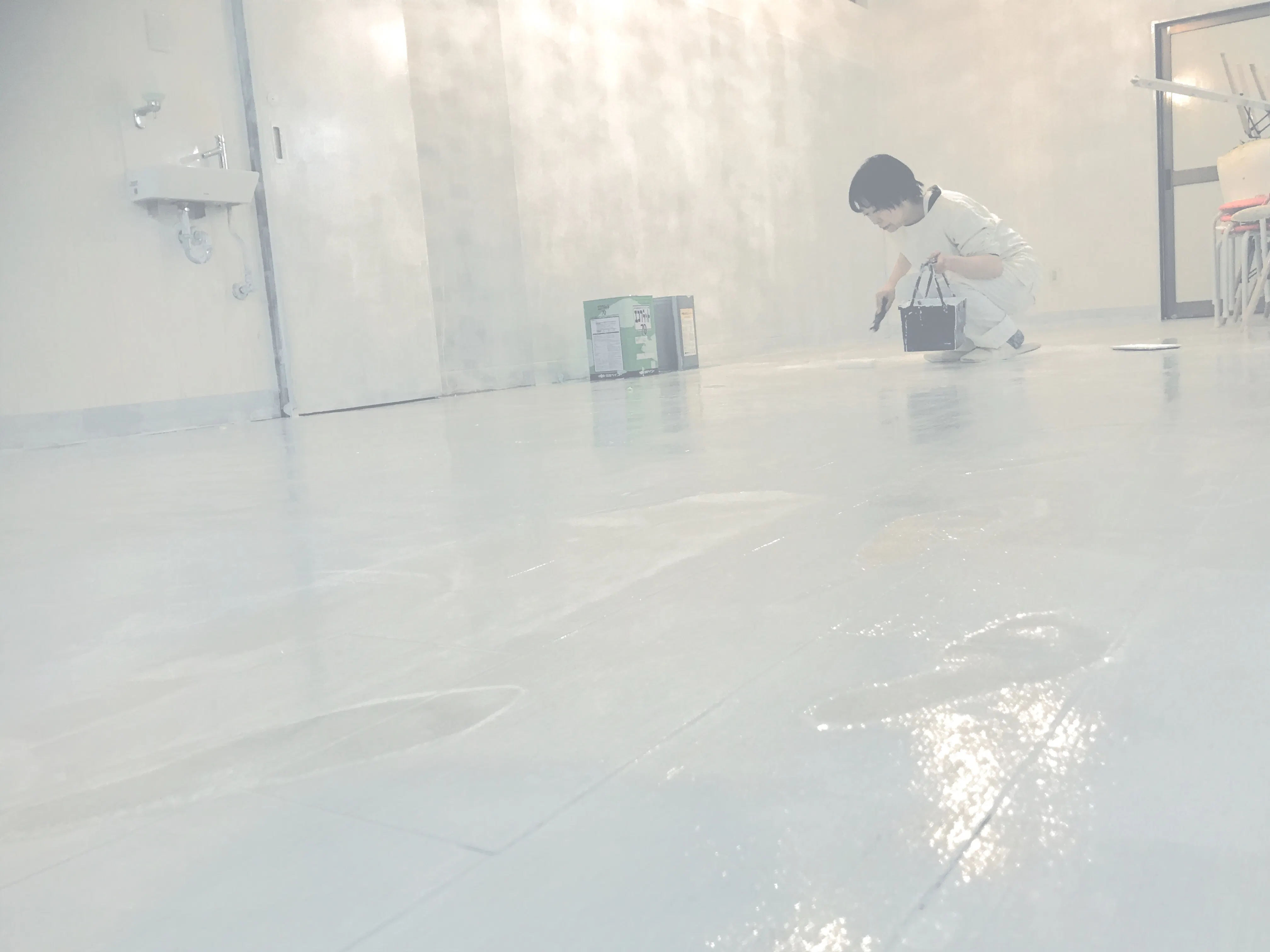 引き続き、目に映るもの全てを白に塗り替える塗装中。