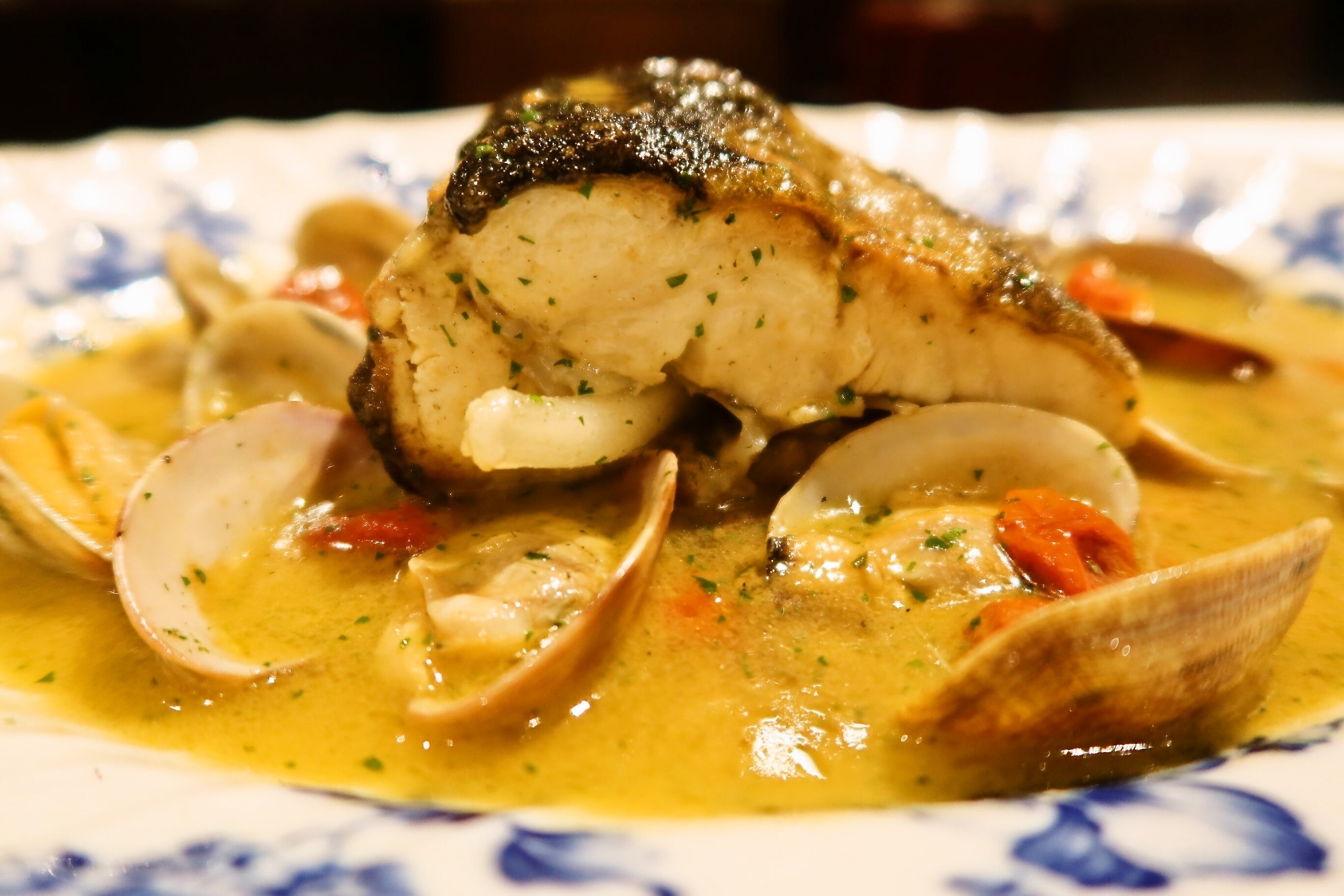 看板料理・アクアパッツア土地の食材を大事にするイタリアの精神を重んじ、使う食材は日髙シェフが実際に生産者の元へと足を運んでおり、とくに魚は、日々生産者とコミュニケーションをとり、素材の状態も徹底チェック。打ち合わせや試食会を通じて、日髙シェフの素材に対する想いやキャビアフィッシュを使用したオリジナル料理に感動を覚えました。