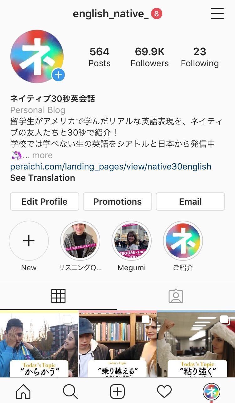 インスタグラムで「ネイティブ30秒英会話」を運営しています。