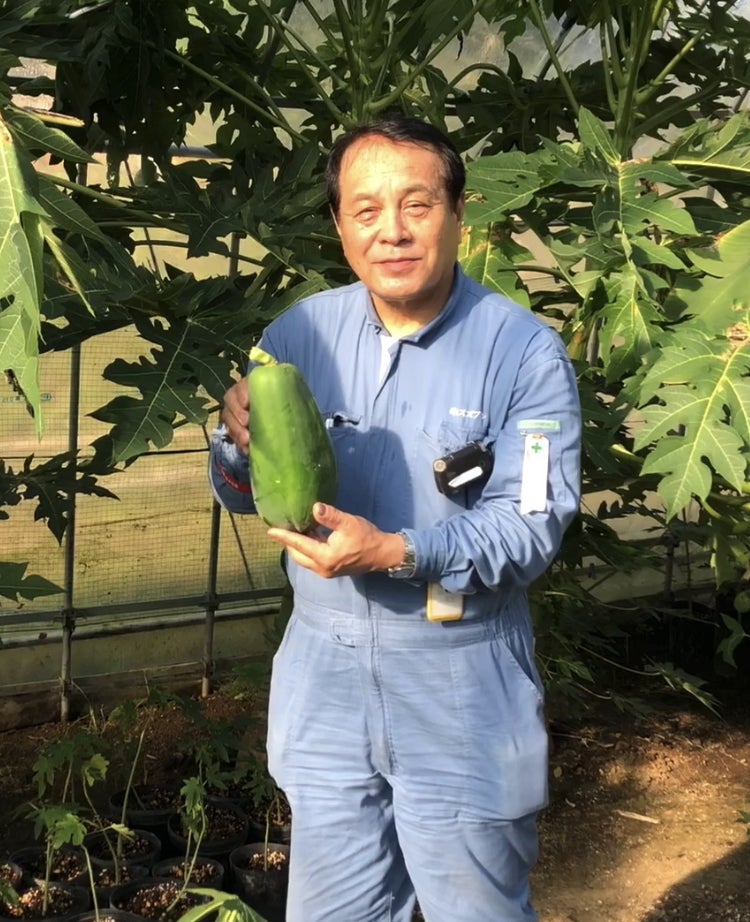私は、高校時代は陸上の選手でした。卒業後社会人となり証券マンとして30数年勤務した後退職、メンテナンス会社を設立、3年ほど前から漢方の教えから出会ったパパイヤ農園に情熱を注いでおります。