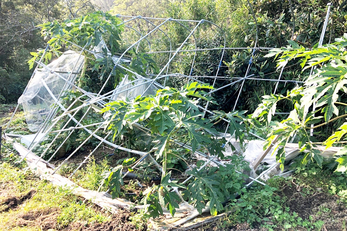 3年前からパパイヤ農園を始め順調に進んで来ましたが、今年の台風15号・19号の被害でビニールハウスが被災し目の前が真っ暗になってしまいました。