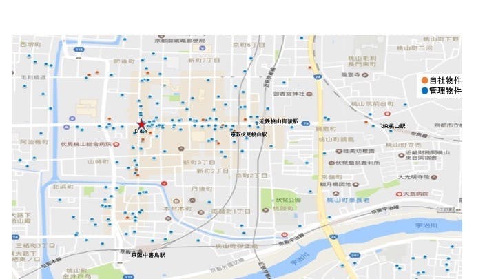 伏見桃山での管理・自社物件MAP