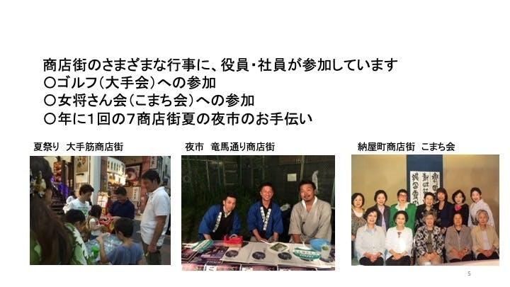 その上で、竜馬通り商店街の方々と当社とで経済産業省の地域商業自立促進事業に取組むこととしました。