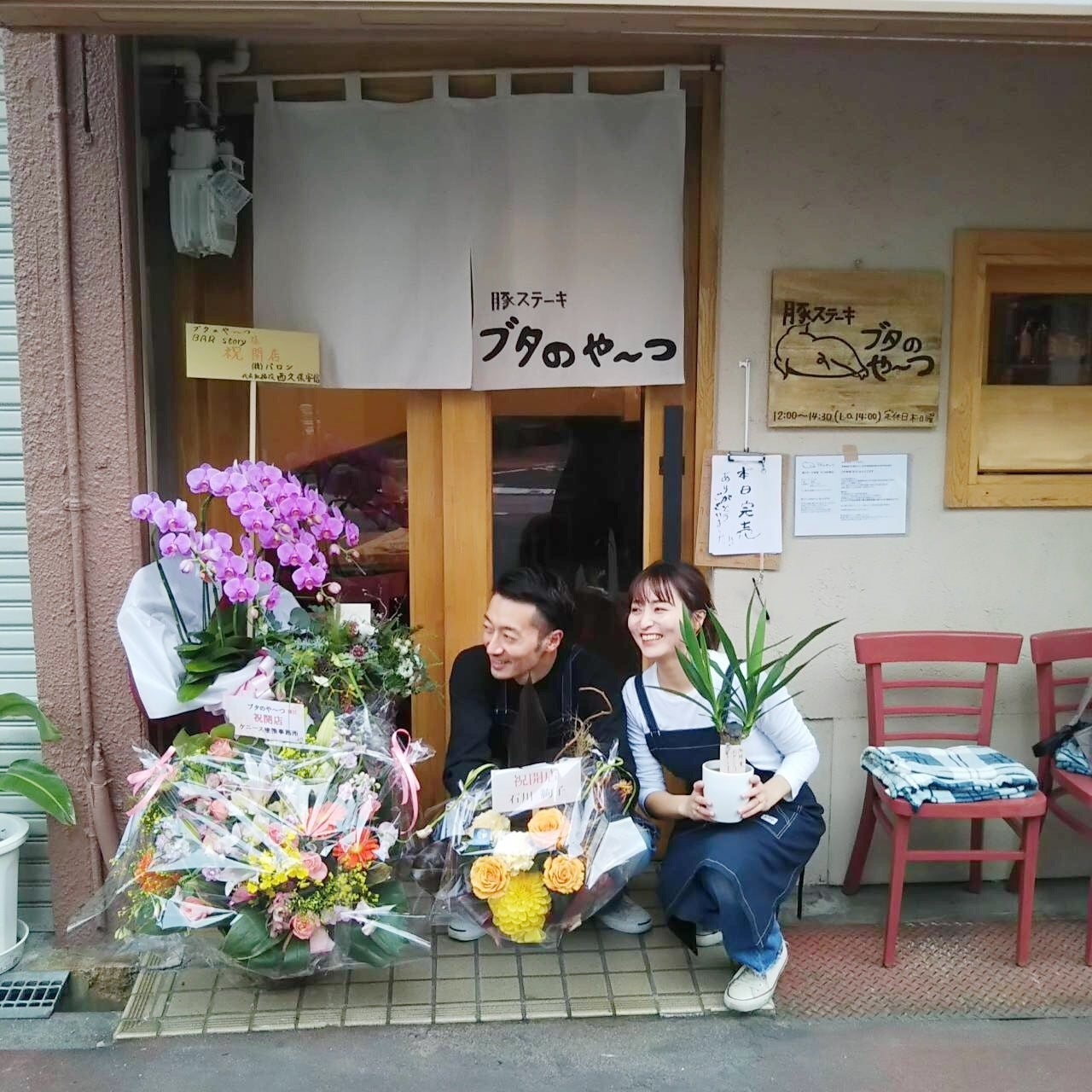 2019/12/31 13:38皆さま、こんにちは‼︎豚ステーキブタのや〜つ/BARstoryは12月28日をもちまして無事に年内営業を終了しました。オープン期間1週間、ランチタイムは家族・友人・前職の皆さま、物件の大家さん、近くにお住まいの方々やお勤めの方々に支えられてランチ完売の毎日を送ることができました!有難うございます!!バータイムは驚くほどまったりとした時間が流れていましたが、そんな中でも知名度のない私たちのお店に来て下さった皆さまに本当に感謝しております。2020年の営業に向けて、改善点をクリアにし、新たに目標を定めて準備を進めております。沢山のお客様に求められるお店になるよう努力を続けていきます。まだまだ駆けだしの2人ではありますが、来年もどうぞ宜しくお願いいたします。2019年、沢山の応援を本当に本当に有難うございました!!!皆さま、お身体にお気をつけて良いお年をお迎えください。年明けは2020年1月6日から営業を再開致します‼︎皆さまのご来店を心よりお待ちしております。 もっと見る