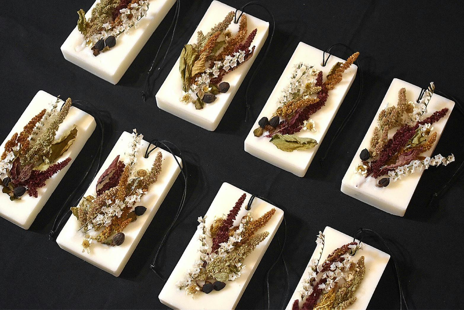 こちらは季節のサシェ。火を灯さないキャンドルとしてFilmの人気商品。秋はキンモクセイでした!吊り下げたり、おいたりするだけで香りがしてきます。