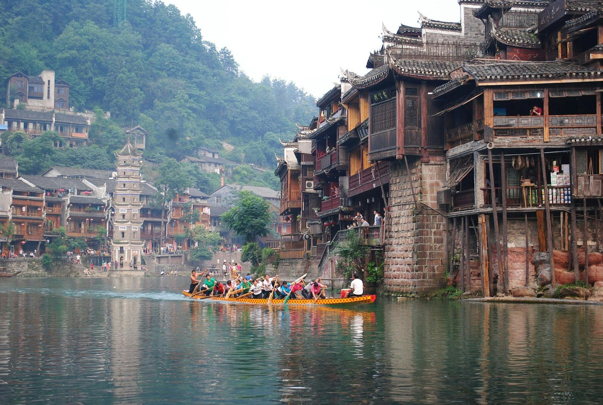 (川に沿った湖南省の街並み)