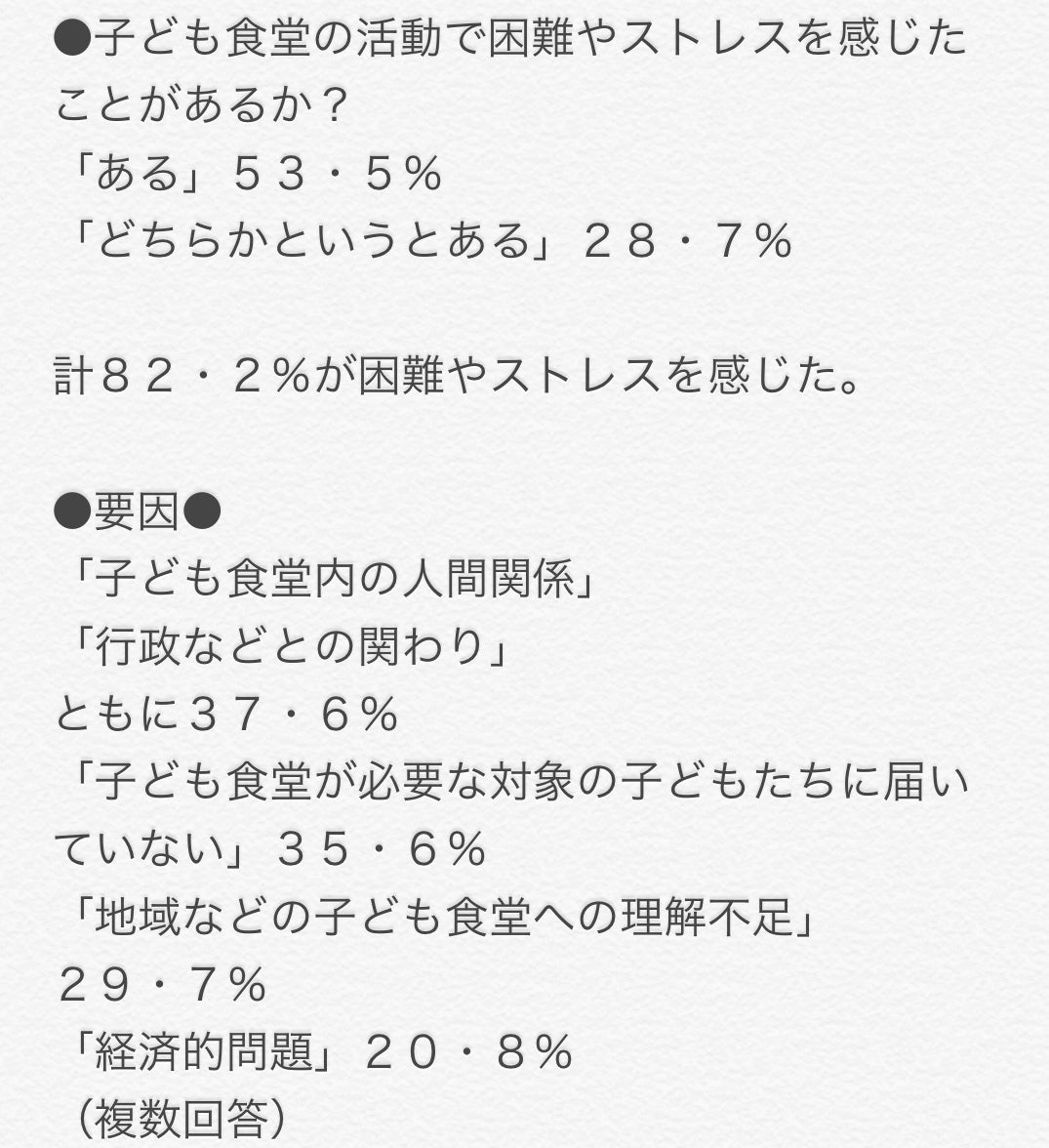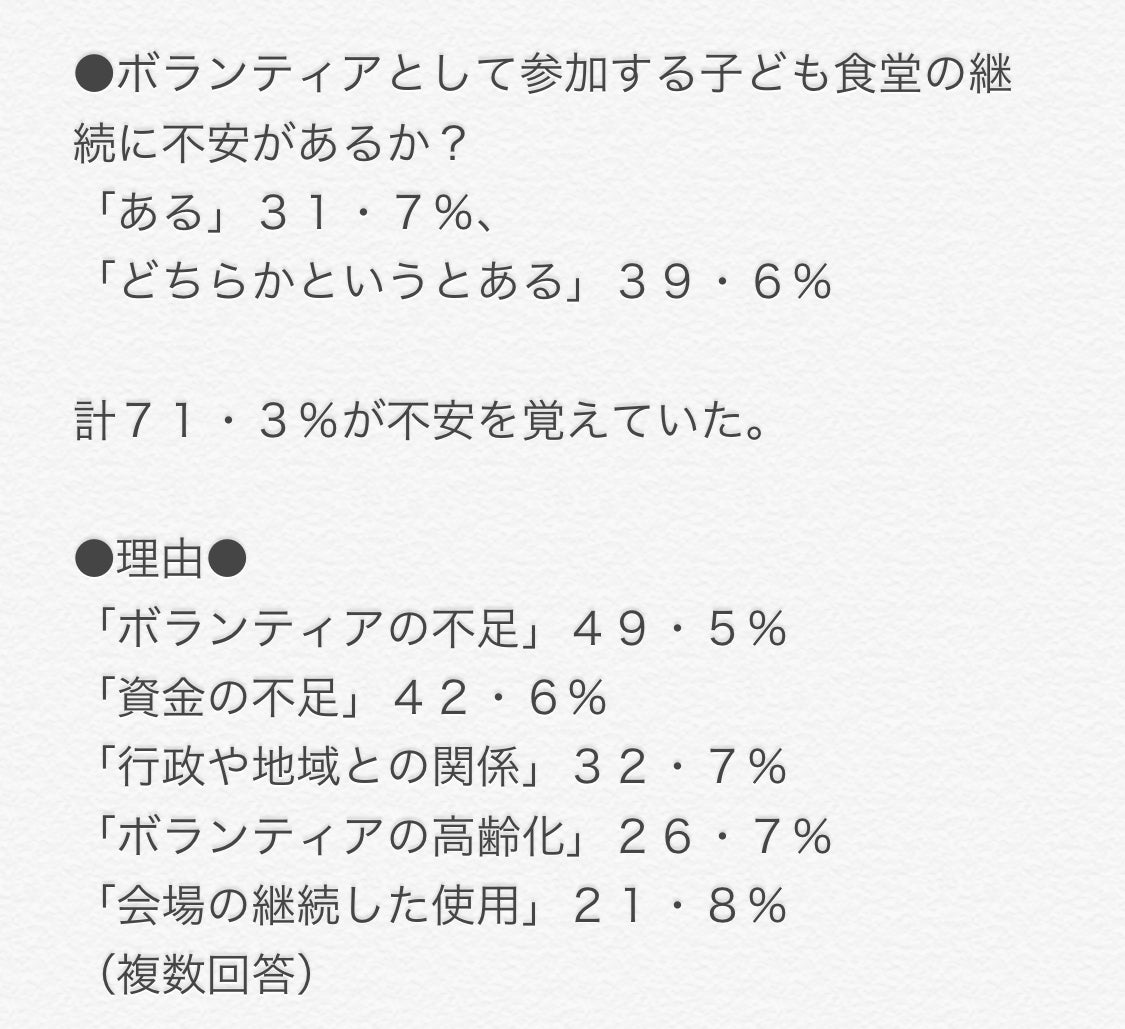 すでに存在する子ども食堂で継続不安の声が数字に出ています。