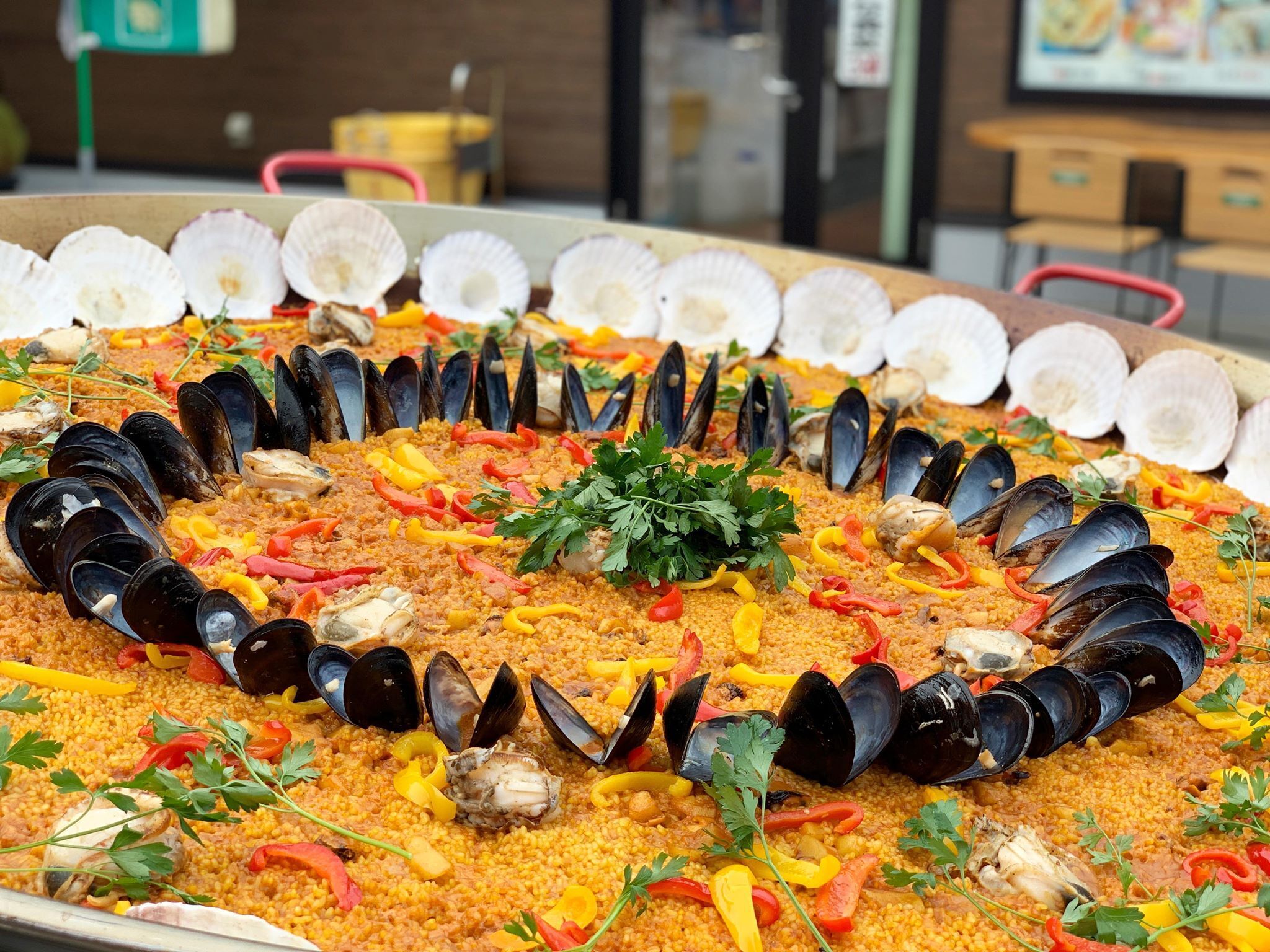 もちろん楽しい企画も考えています。下の写真は先日開かれたイベントで、地元で獲れたホタテやムール貝などをふんだんに使用して大きなパエリアをつくった時のもの。最初はどうなることかと思いましたが大成功。THREE PEAKSのワインやりんごジュースもふるまい、子供はもちろん、私たち大人も楽しむことができました。