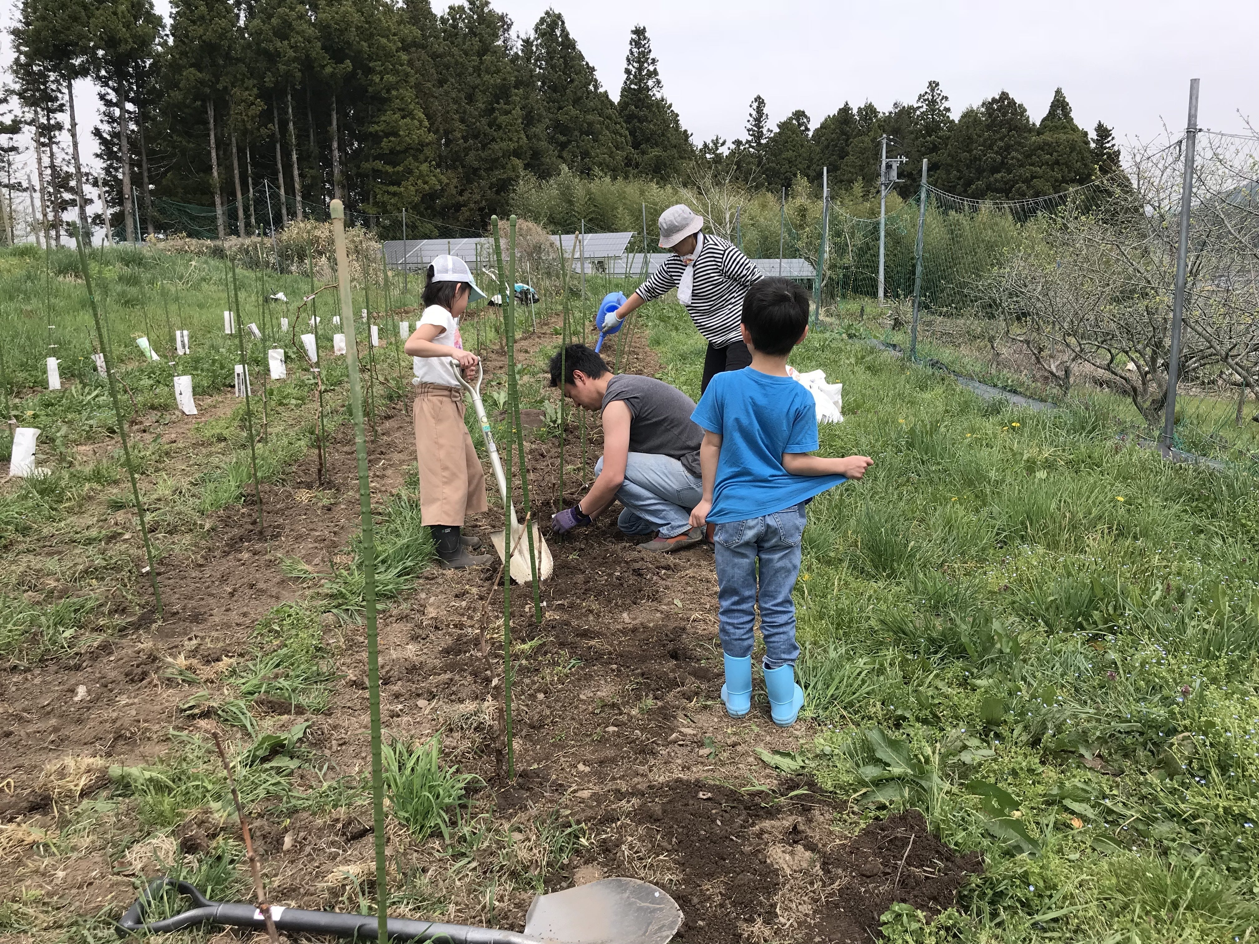 ▲ぶどうの植樹。お子さんが一緒でも体験できる作業です。