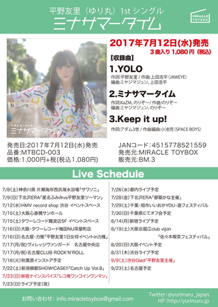 ライブでは既にお馴染みの「ミナサマータイム」 と完全未発表曲2曲を収録した3曲入りの1stシングル。