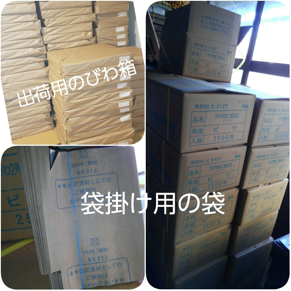 びわの袋掛けに必要な専用の袋と、化粧箱(出荷するのに大事)が続々と届きました!