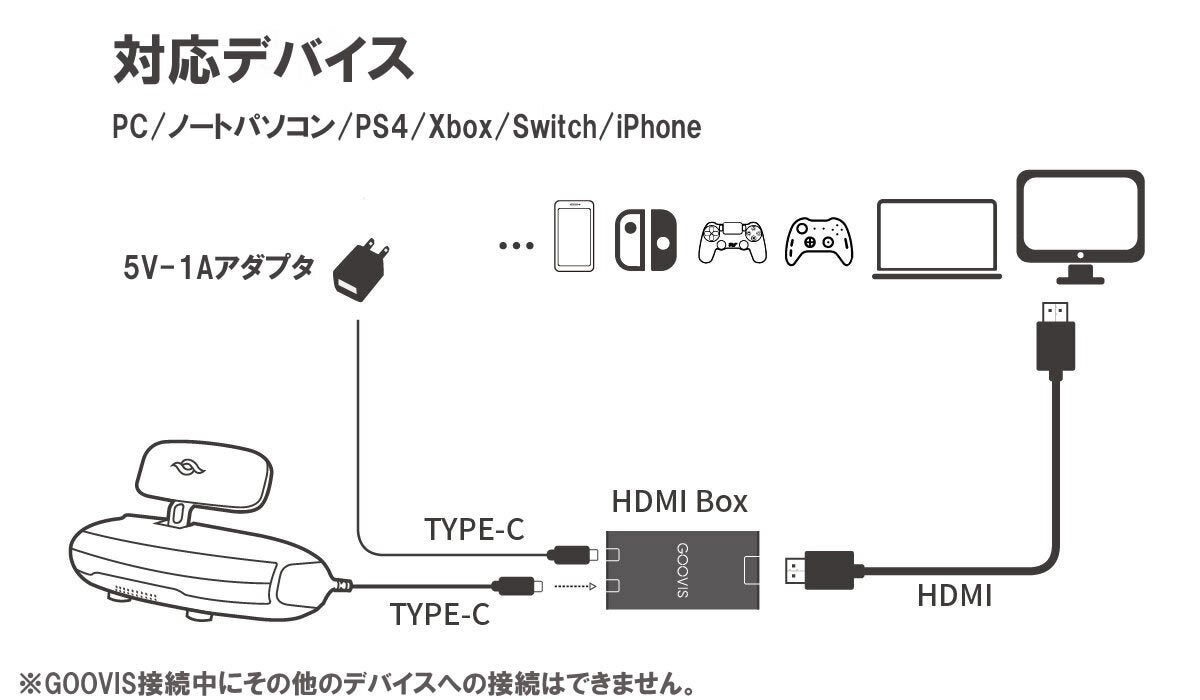 通常GOOVIS T2はスマートフォンなどの接続された機器の電源で稼働しています。