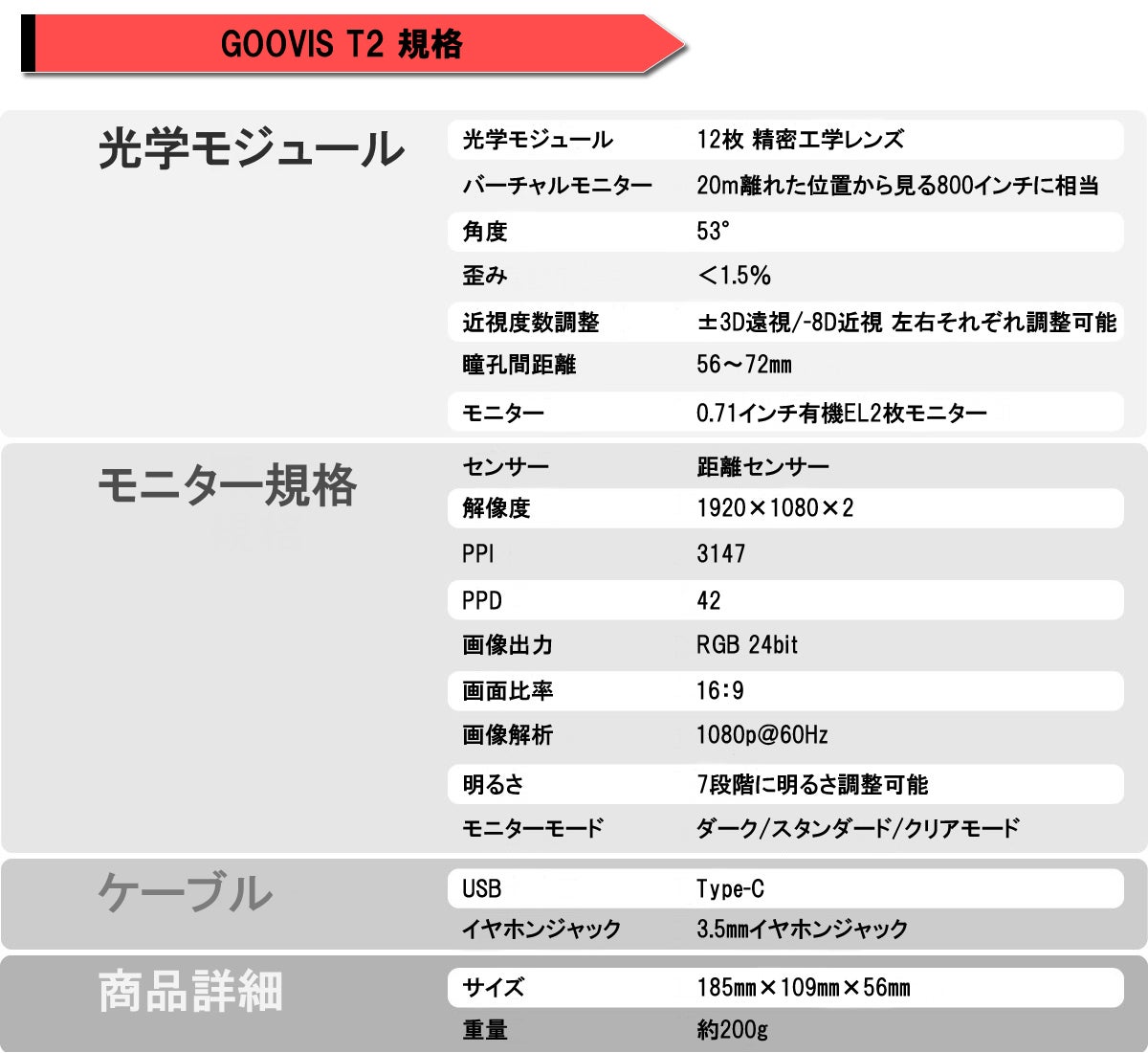 これは、GOOVIS T2がiPhone Xなどの大型M-OLEDデバイスの7倍のピクセル密度を持ち、より鮮明で滑らかで美しい画像を提供することを意味します。