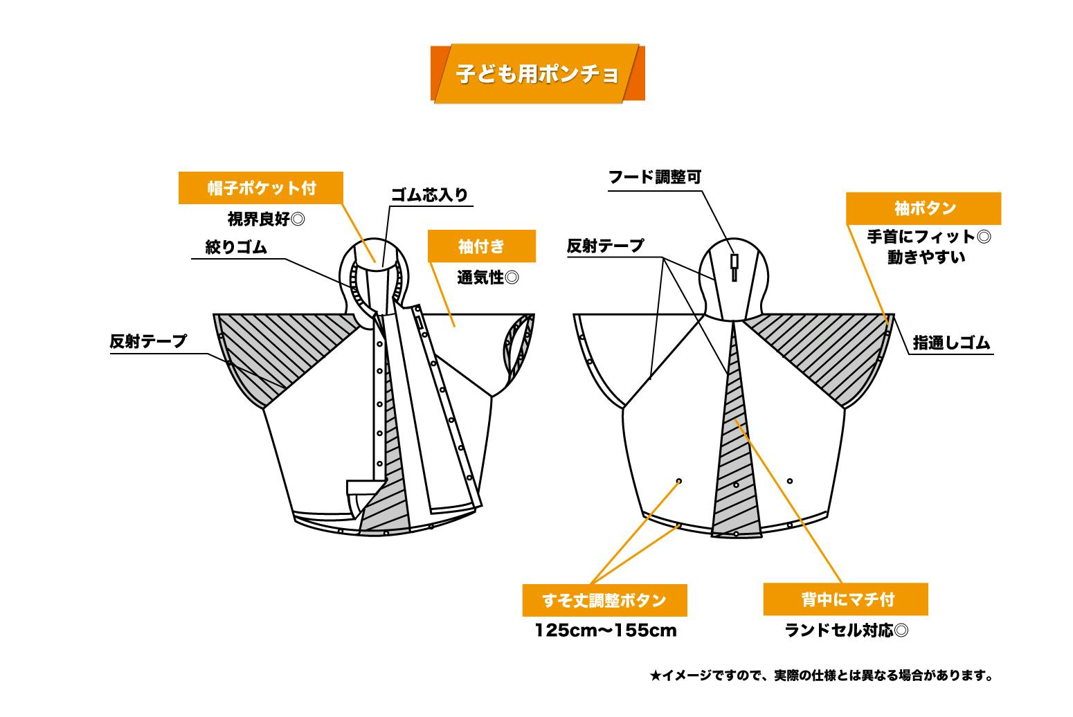 *大人用は一般的なポンチョのフリーサイズ仕様です。