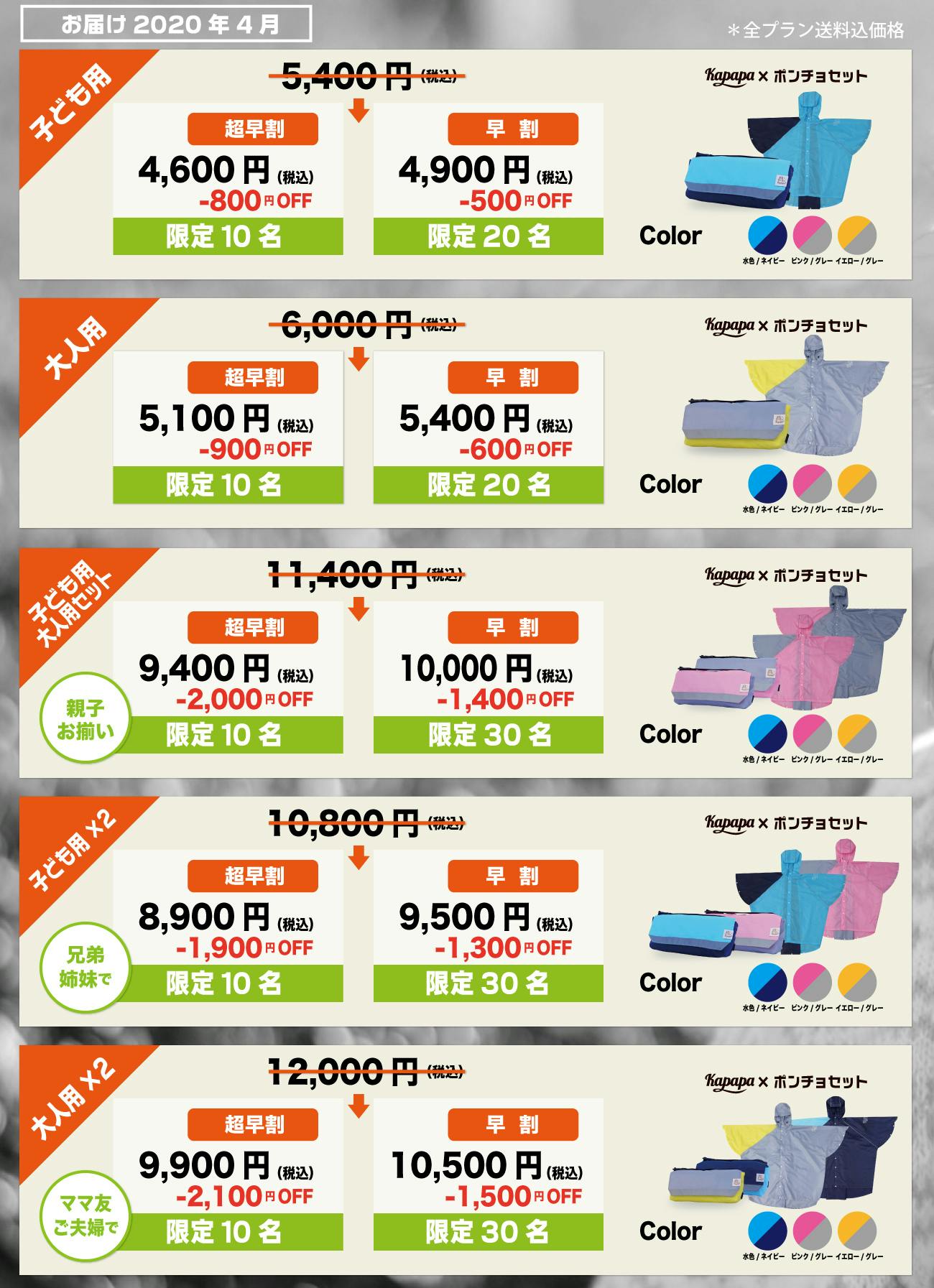 リターン品は以下5タイプあり、各サイズとも3色からお選び頂けます。