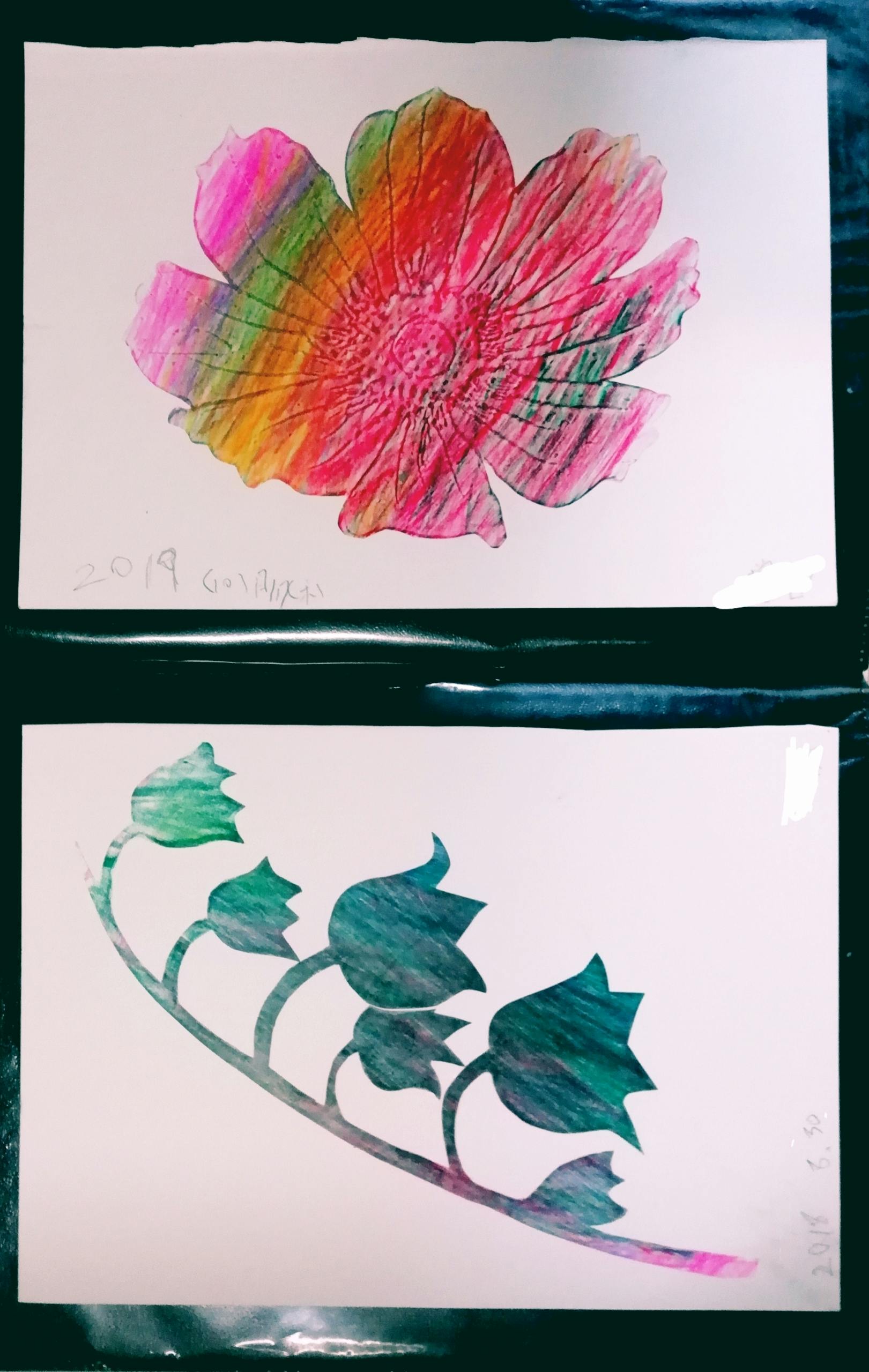 紙版による間接的画法(フロッタージュ技法を使った応用)