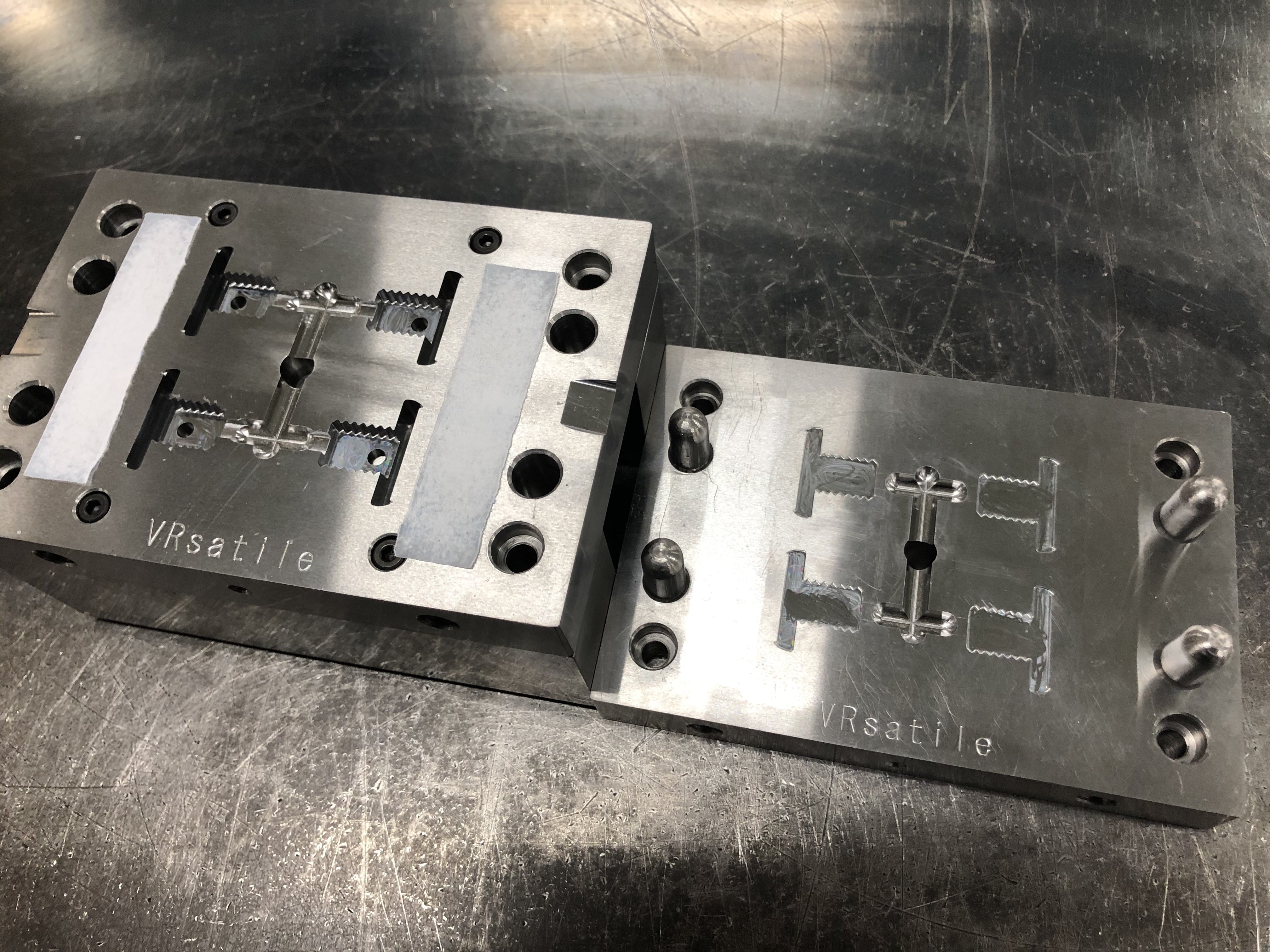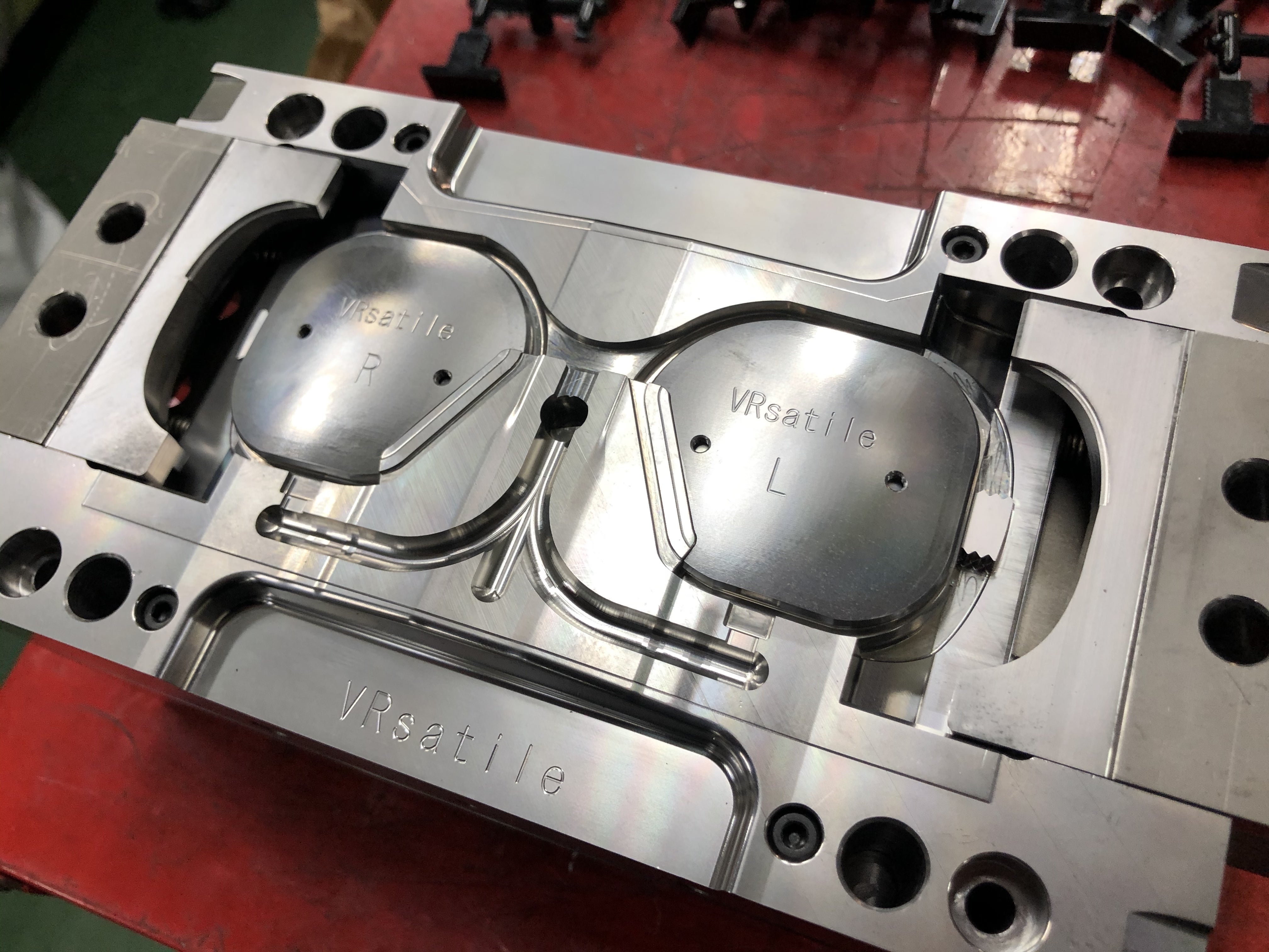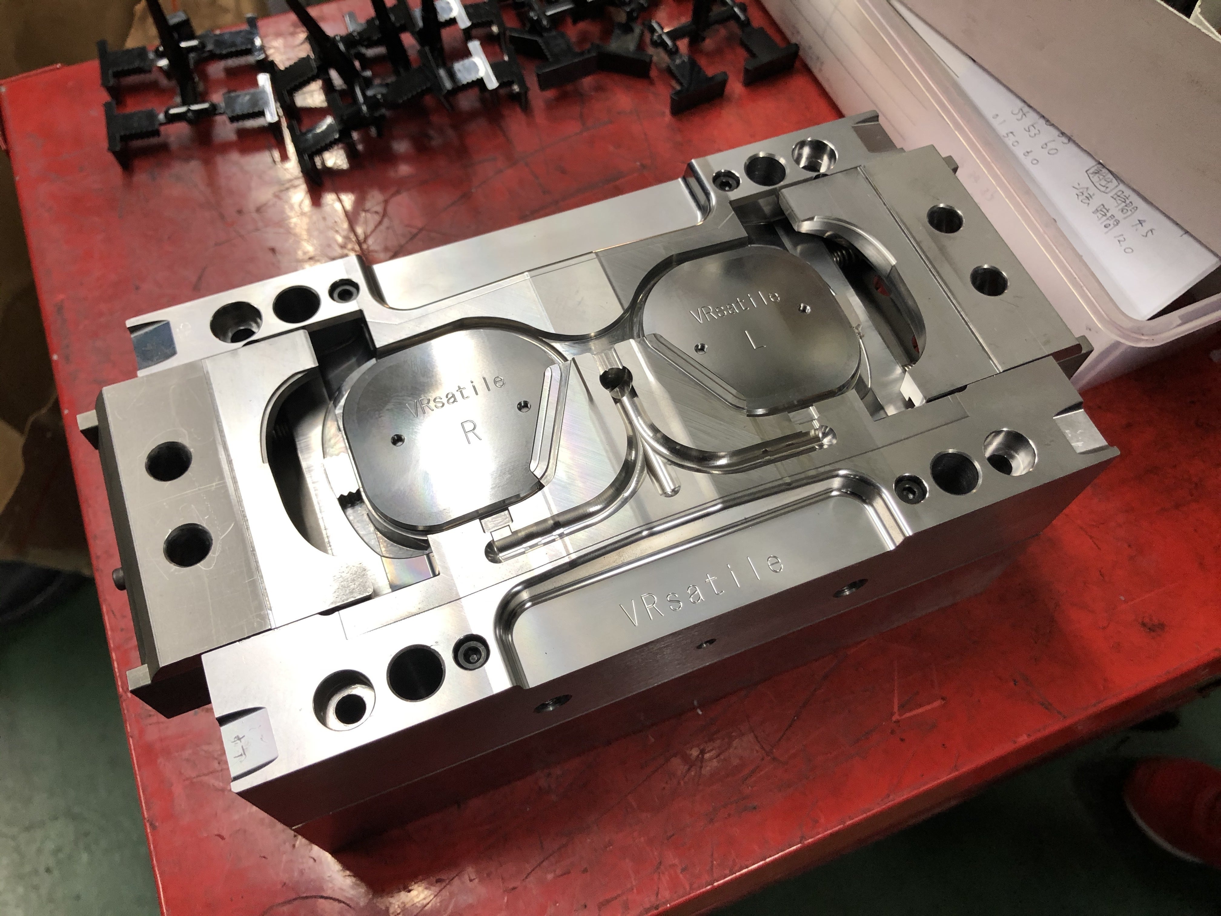 VRsatileはあらゆるHMDに適合させるために複雑な形状をしておりまして、金型もこちらのように複雑な構造となっております。